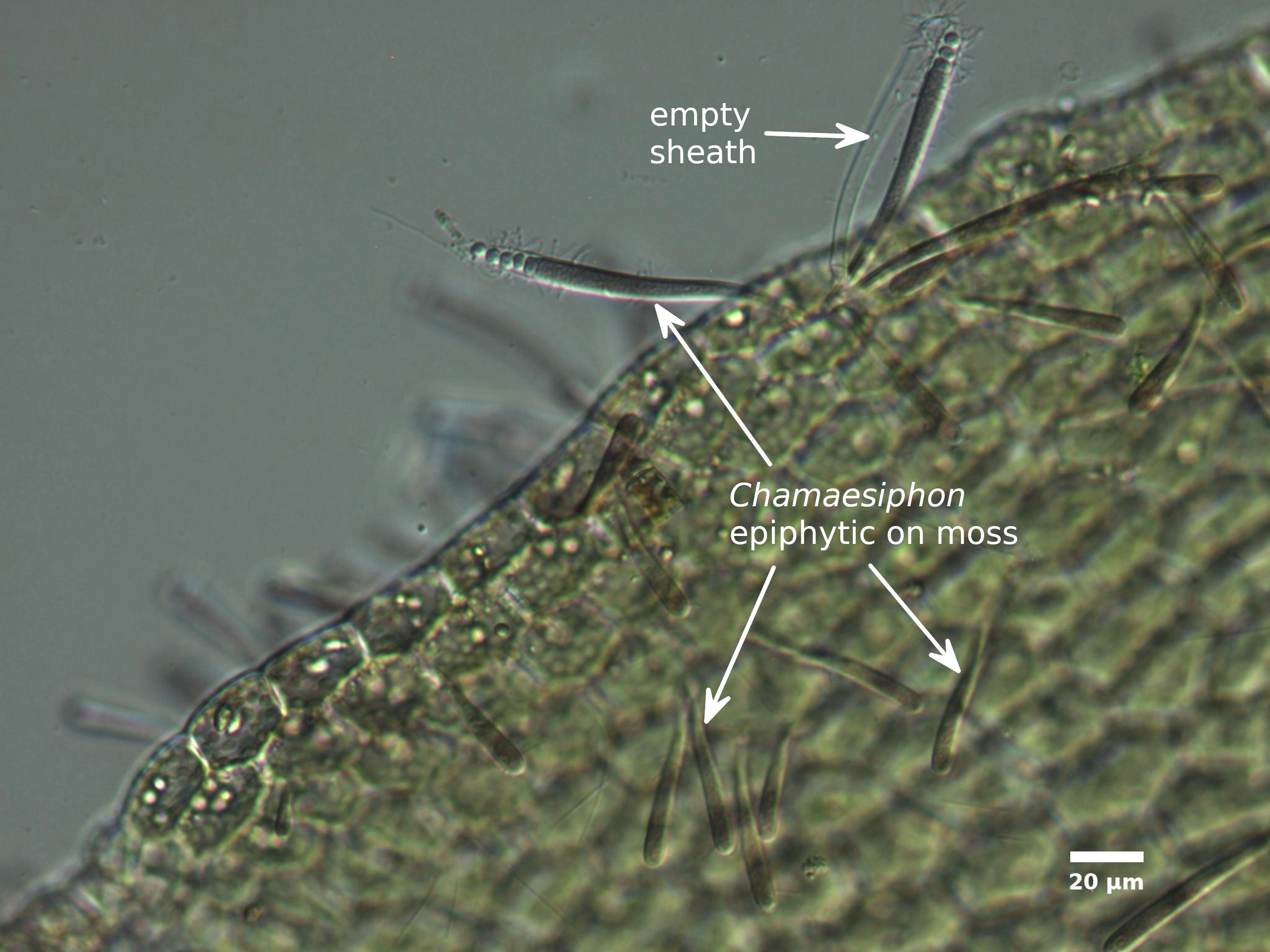 Comments: Uncommon and inconspicuous; epiphytic on submerged plants in cold, clear mountain lakes, ponds, seeps, and streams