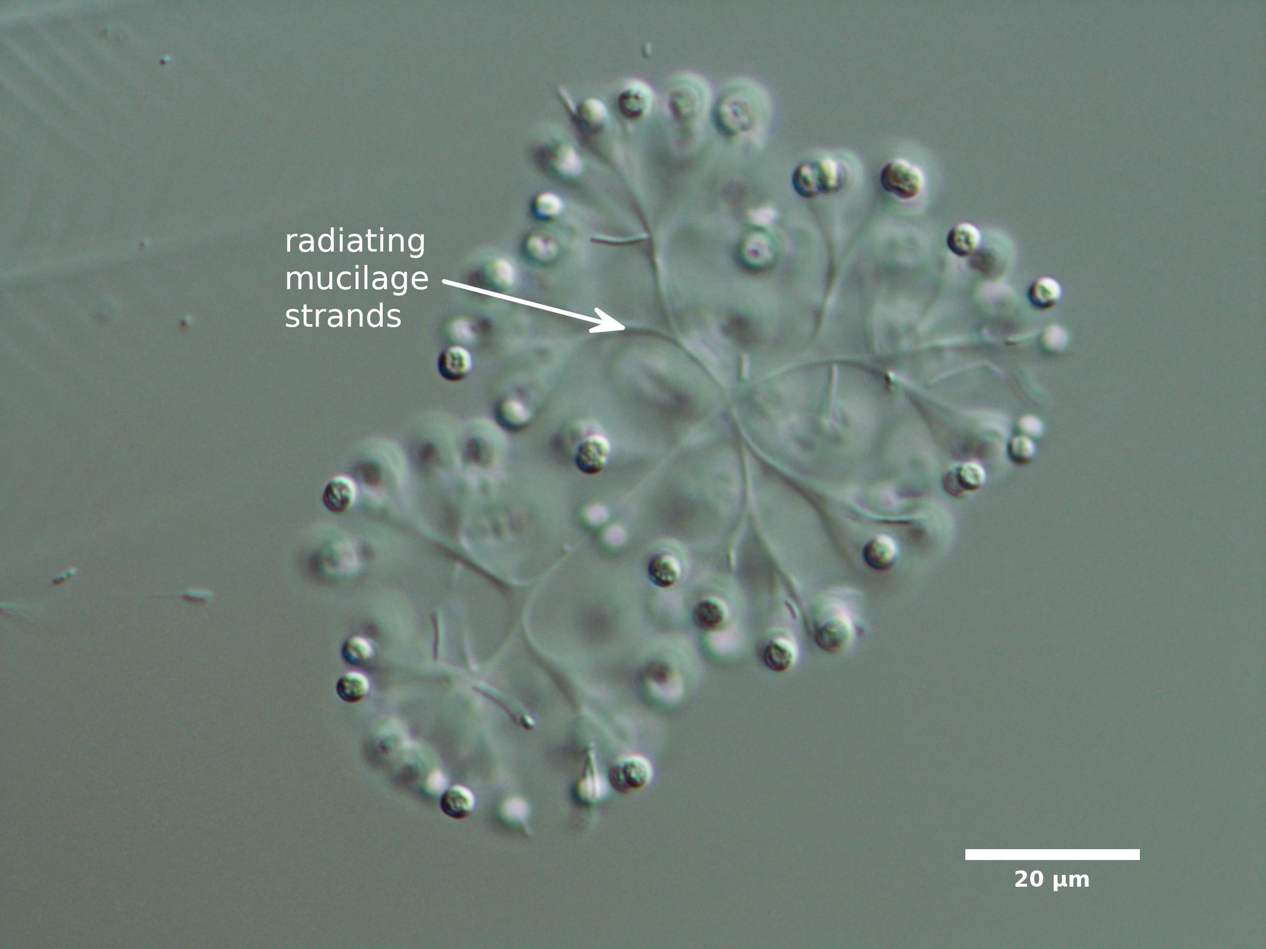 D1. CELLS ATTACHED TO RADIATING MUCILAGE STRANDS
