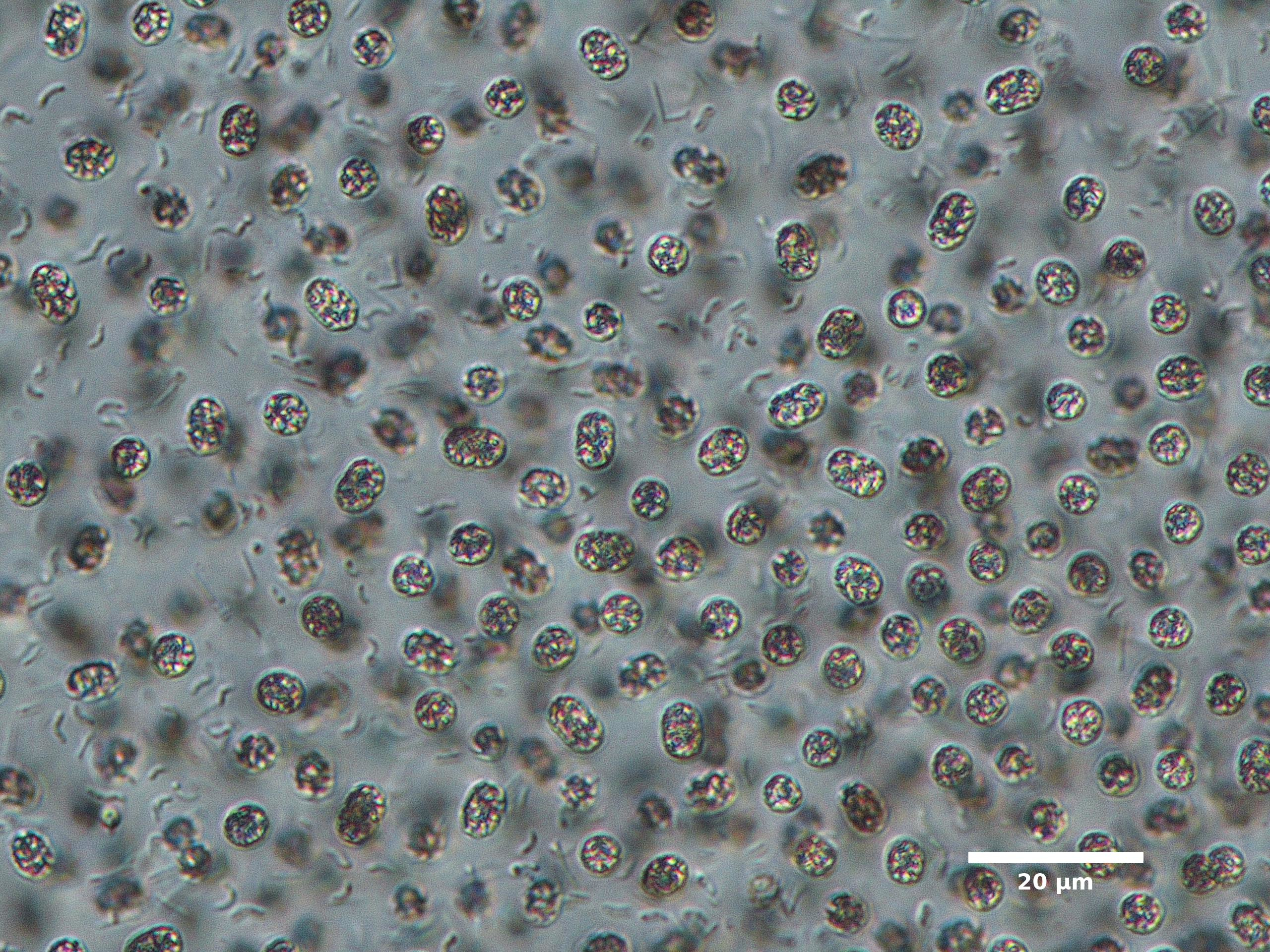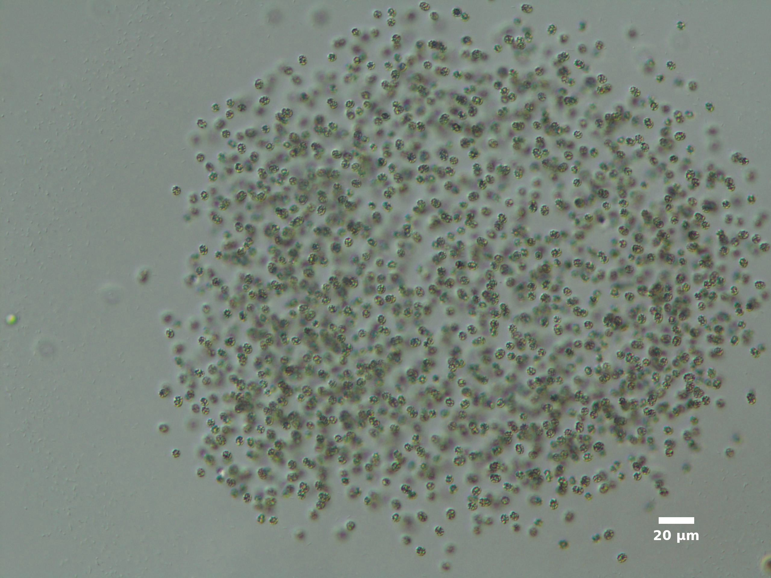 D2. CELLS NOT ATTACHED TO RADIATING MUCILAGE STRANDS (STRANDS MAY BE PRESENT BUT INVISIBLE UNDER NORMAL MAGNIFICATION)