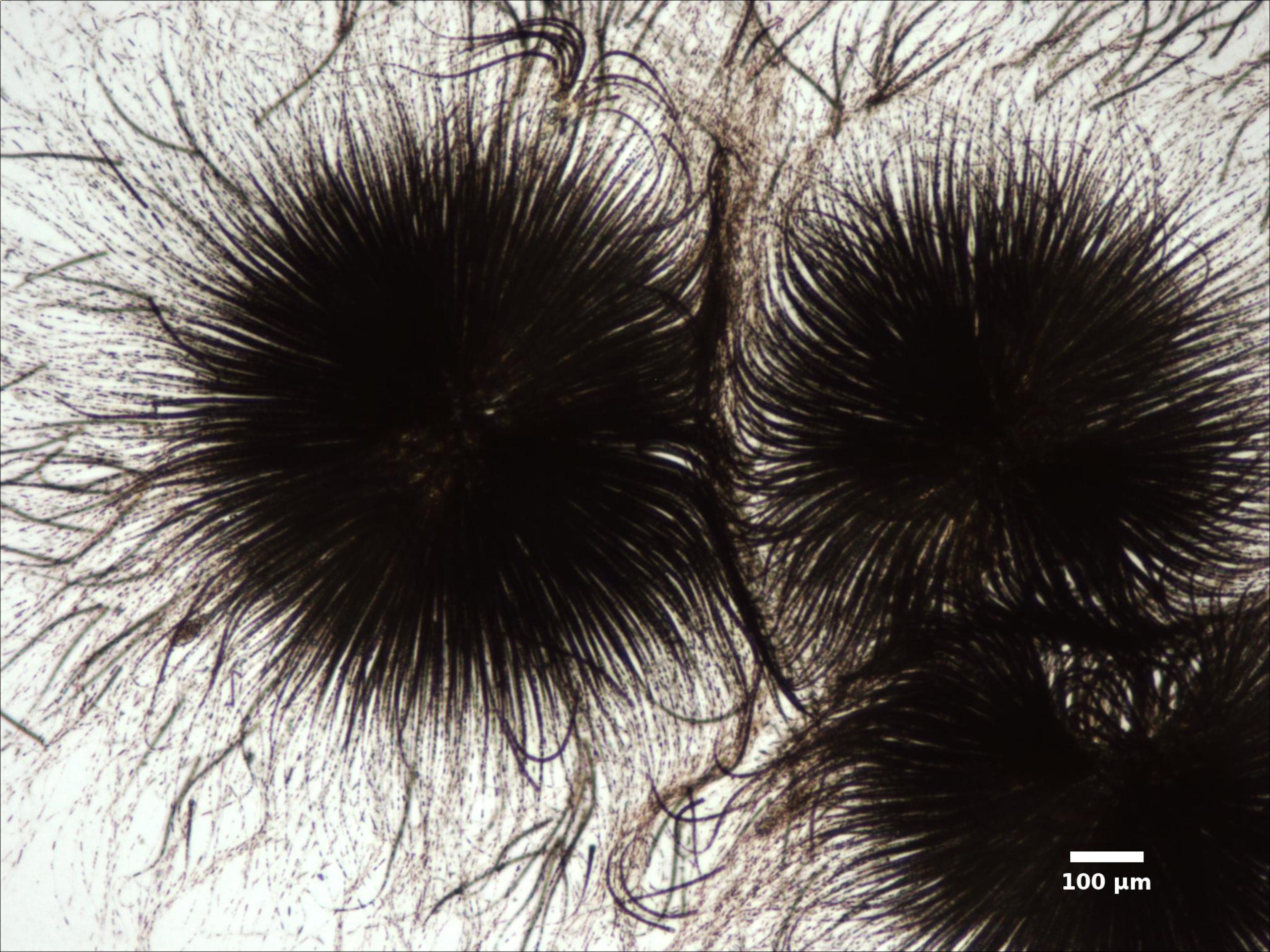 F3. FILAMENTS RADIATING FROM COMMON CENTER, FORMING SPHERICAL OR HEMISPHERICAL COLONIES: