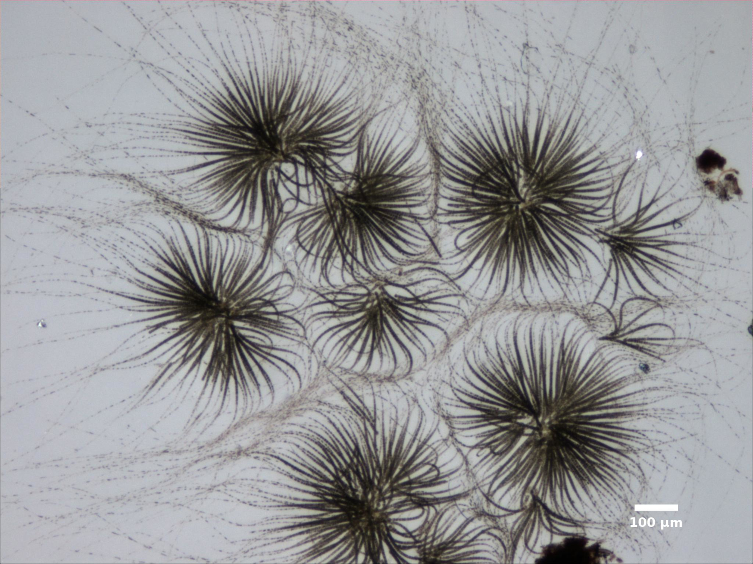 D1. CELLS ATTACHED TO RADIATING MUCILAGE STRANDS