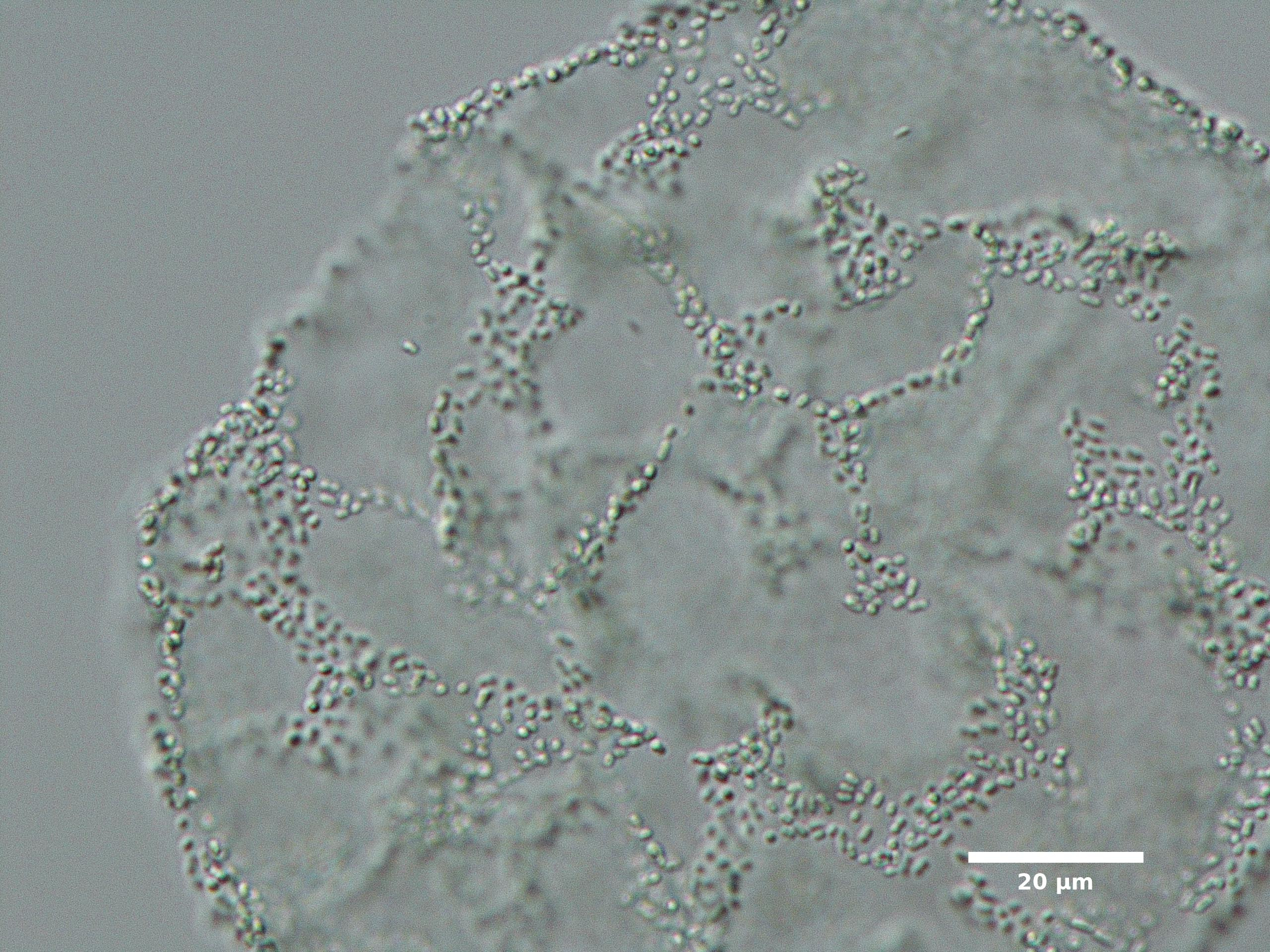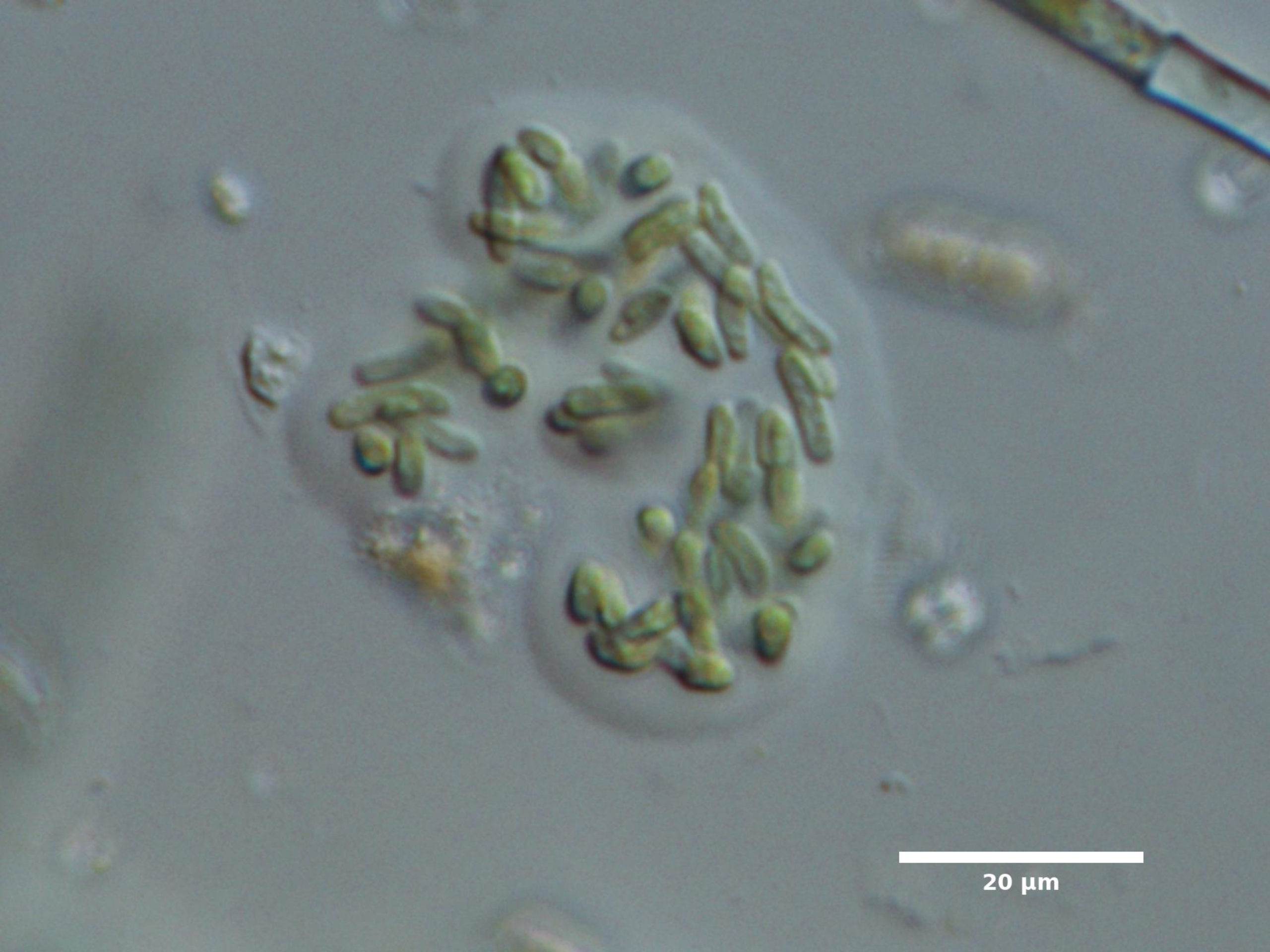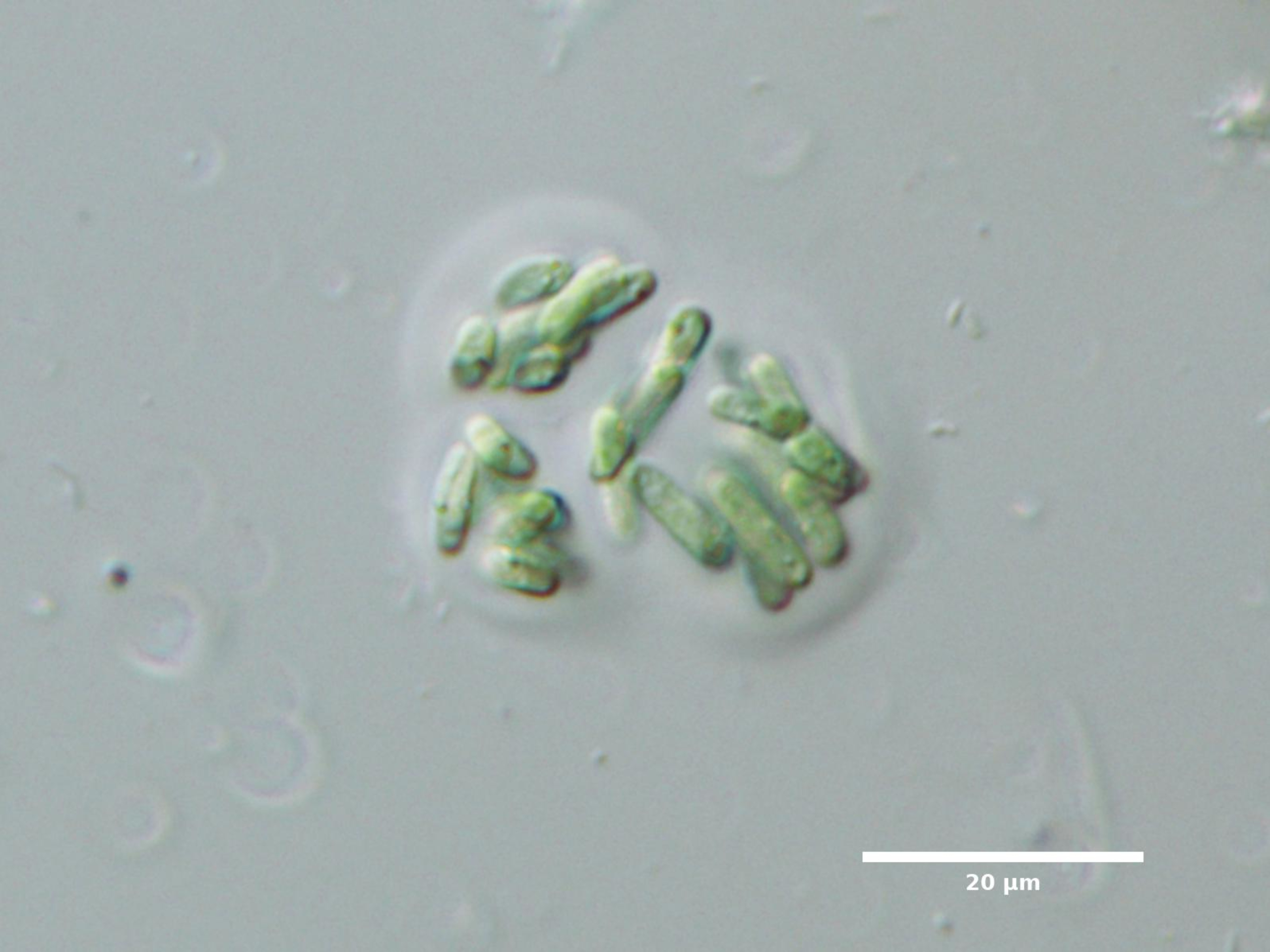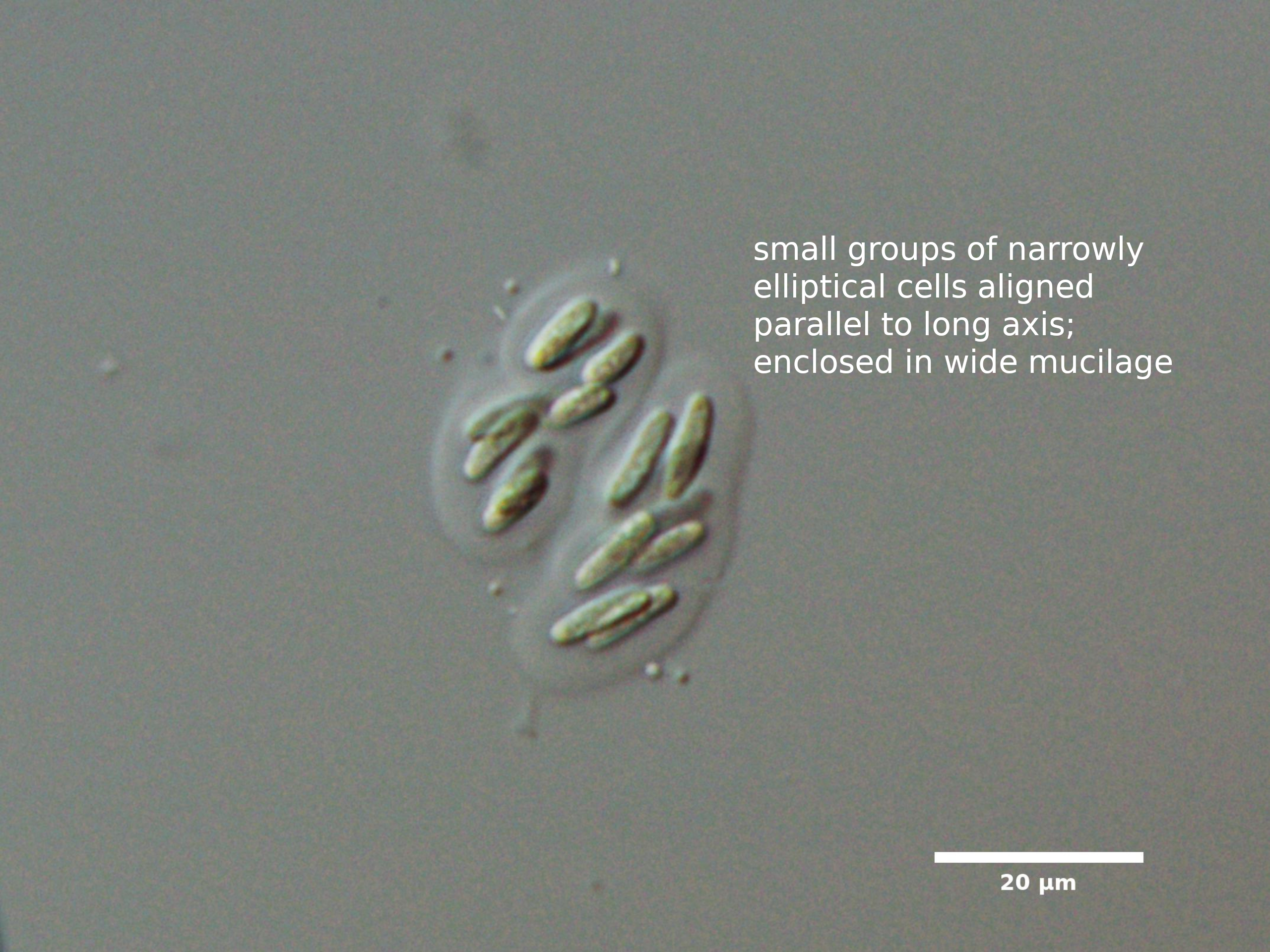 F5. CELLS NARROWLY ELLIPTICAL, CYLINDRICAL, OR FUSIFORM; COLONIES COMPACT, SURROUNDED BY BROAD MUCILAGE: