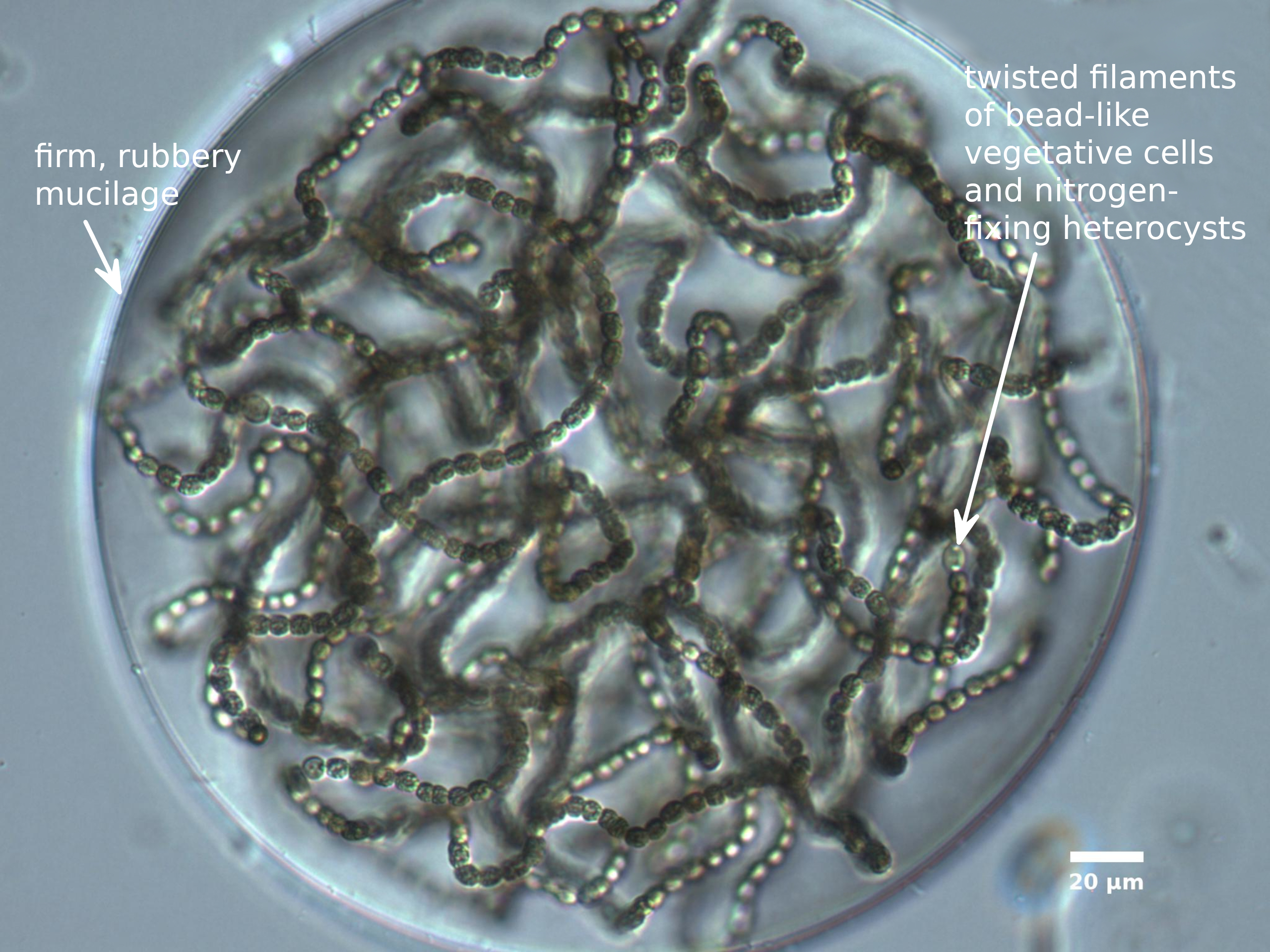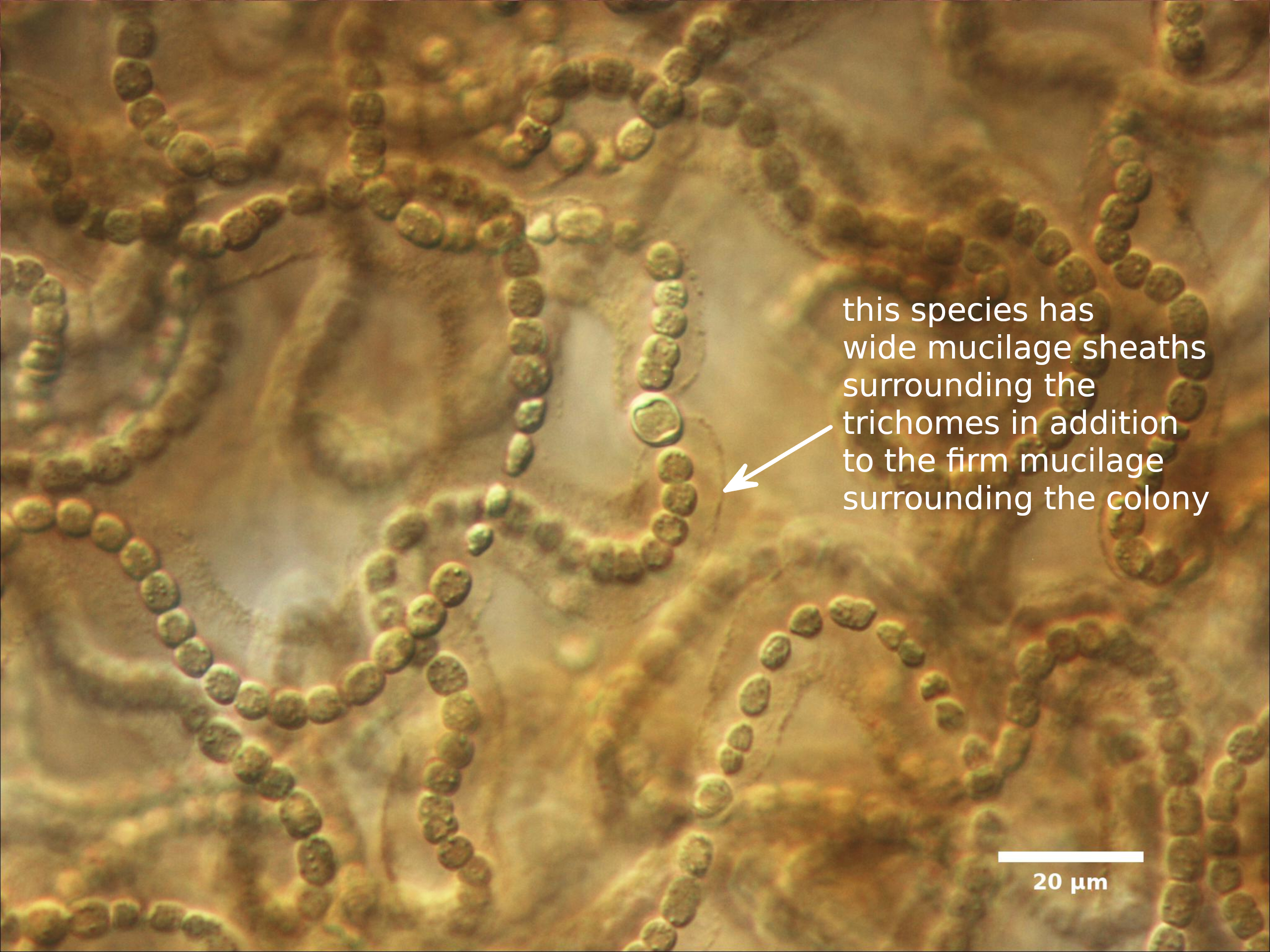 E1. TRICHOMES ENCLOSED IN RUBBERY MUCILAGE FORMING SPHERICAL OR OVAL COLONIES; MICROSCOPIC OR MACROSCOPIC COLONIES: