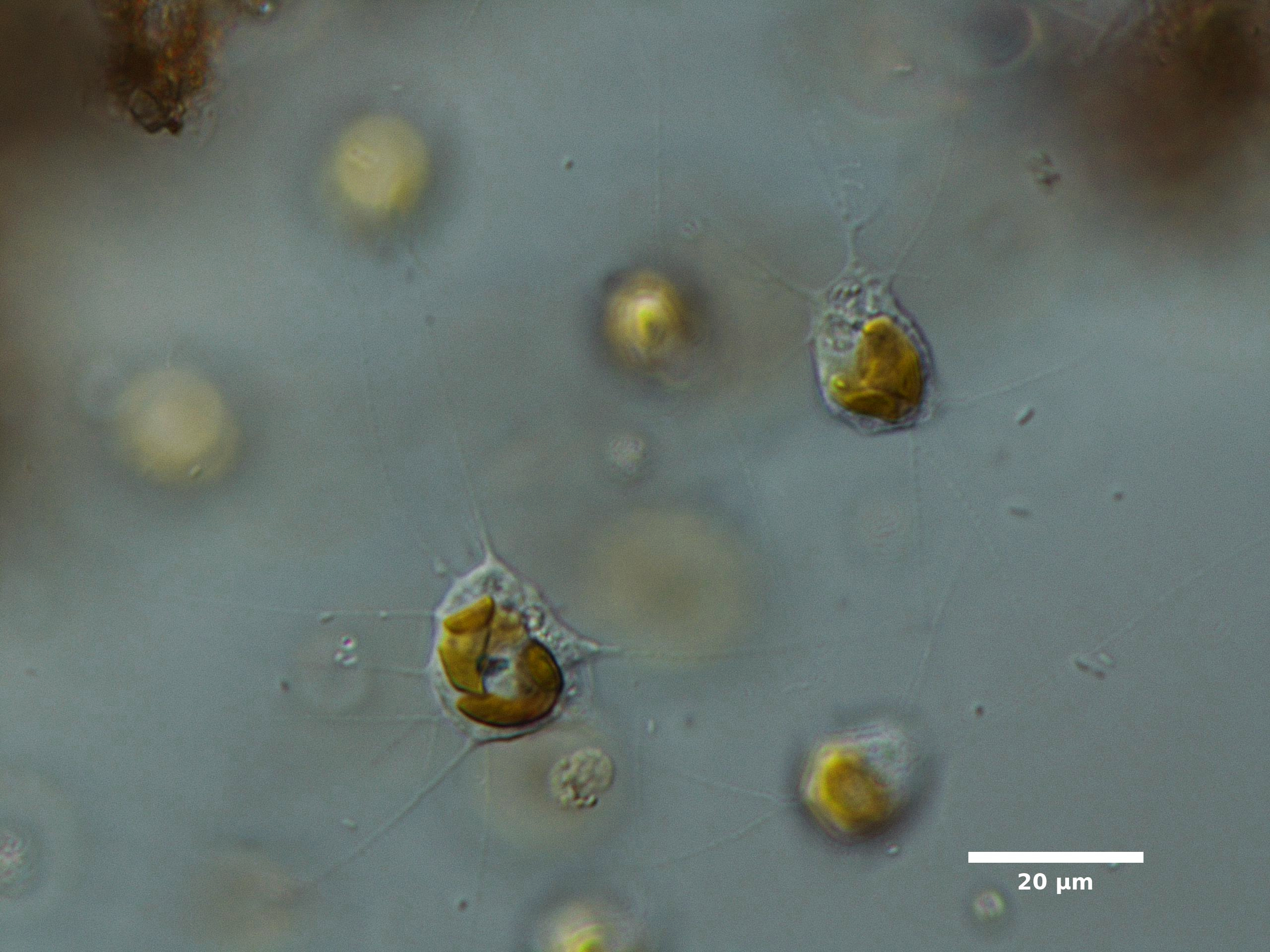 E1. CELLS ROUGHLY SPHERICAL IN OUTLINE, WITH FLEXIBLE WALLS AND LONG, THIN PSEUDOPODS; CELLS MAY EXHIBIT AMOEBOID MOVEMENT: