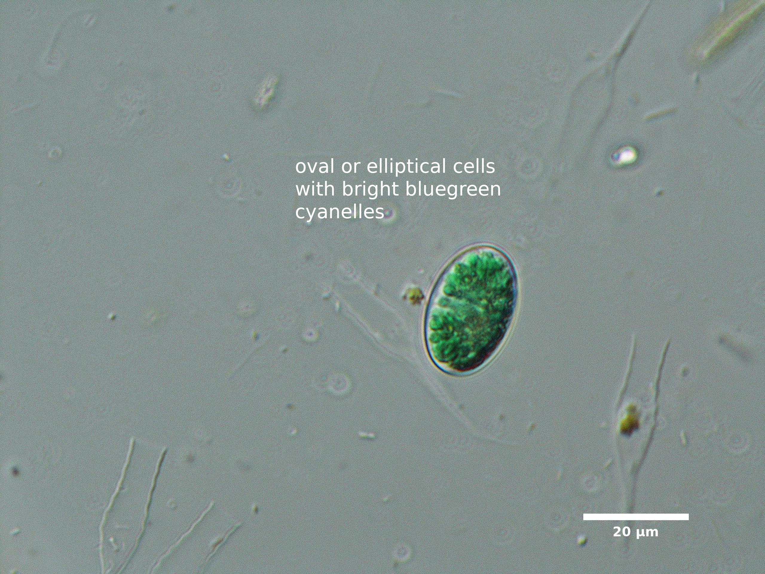 D3. CELLS OVAL, ELLIPTICAL, OR LEMON-SHAPED; CELL MAY OR MAY NOT BE SURROUNDED BY MUCILAGE; ALSO CHECK SPHERICAL SECTION FOR BROADLY OVAL CELLS