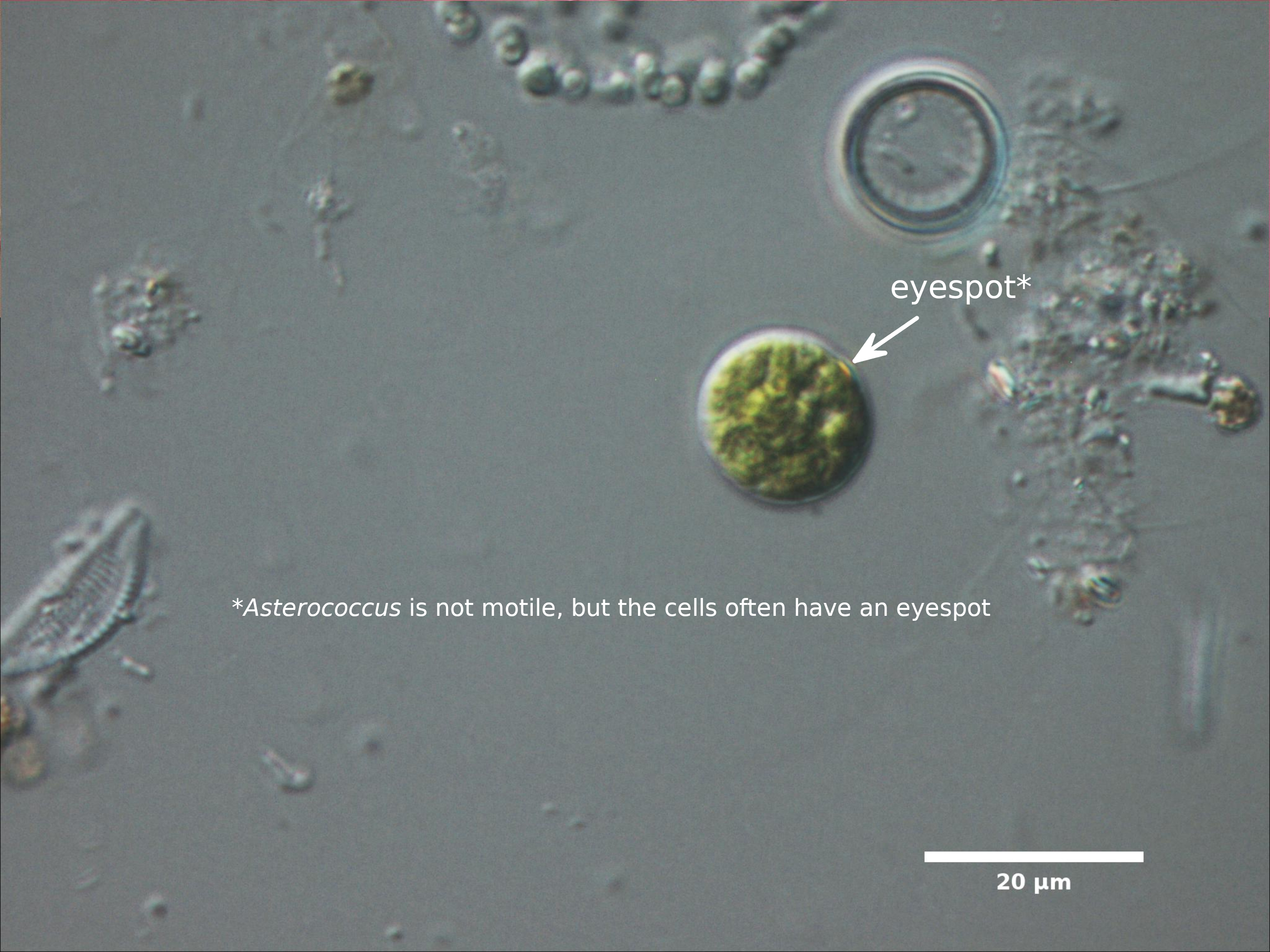 E5. SPHERICAL OR OVAL, BRIGHT GREEN CELLS WITH STAR-SHAPED CHLOROPLAST RADIATING FROM CENTRAL PYRENOID; SOLITARY OR IN SMALL COLONIES SURROUNDED BY DIFFUSE BUT (USUALLY) VISIBLE MUCILAGE: