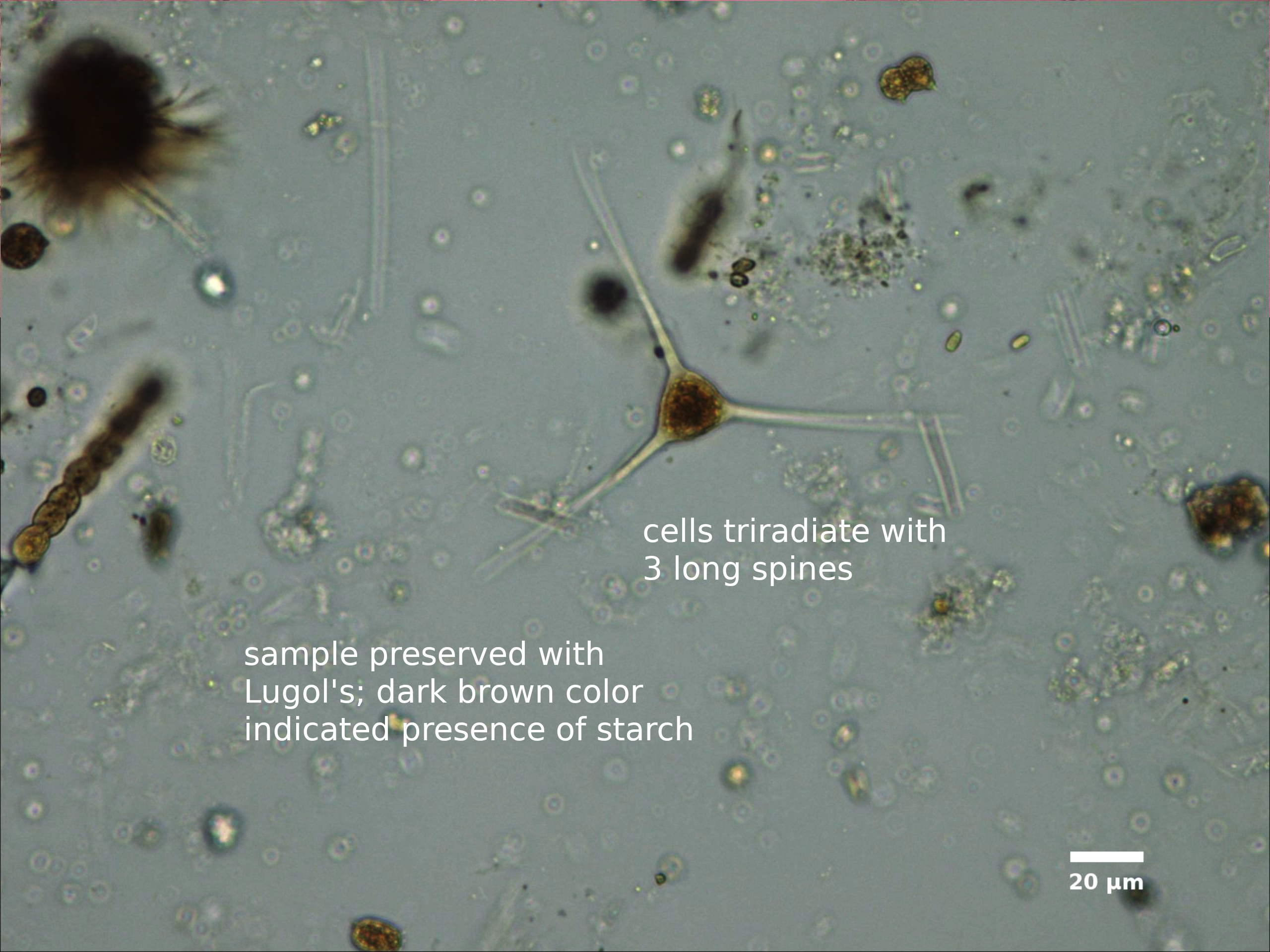 D1. CELLS 3-SIDED (TRIRADIATE) WITH LONG, STRAIGHT SPINES AT EACH ANGLE: