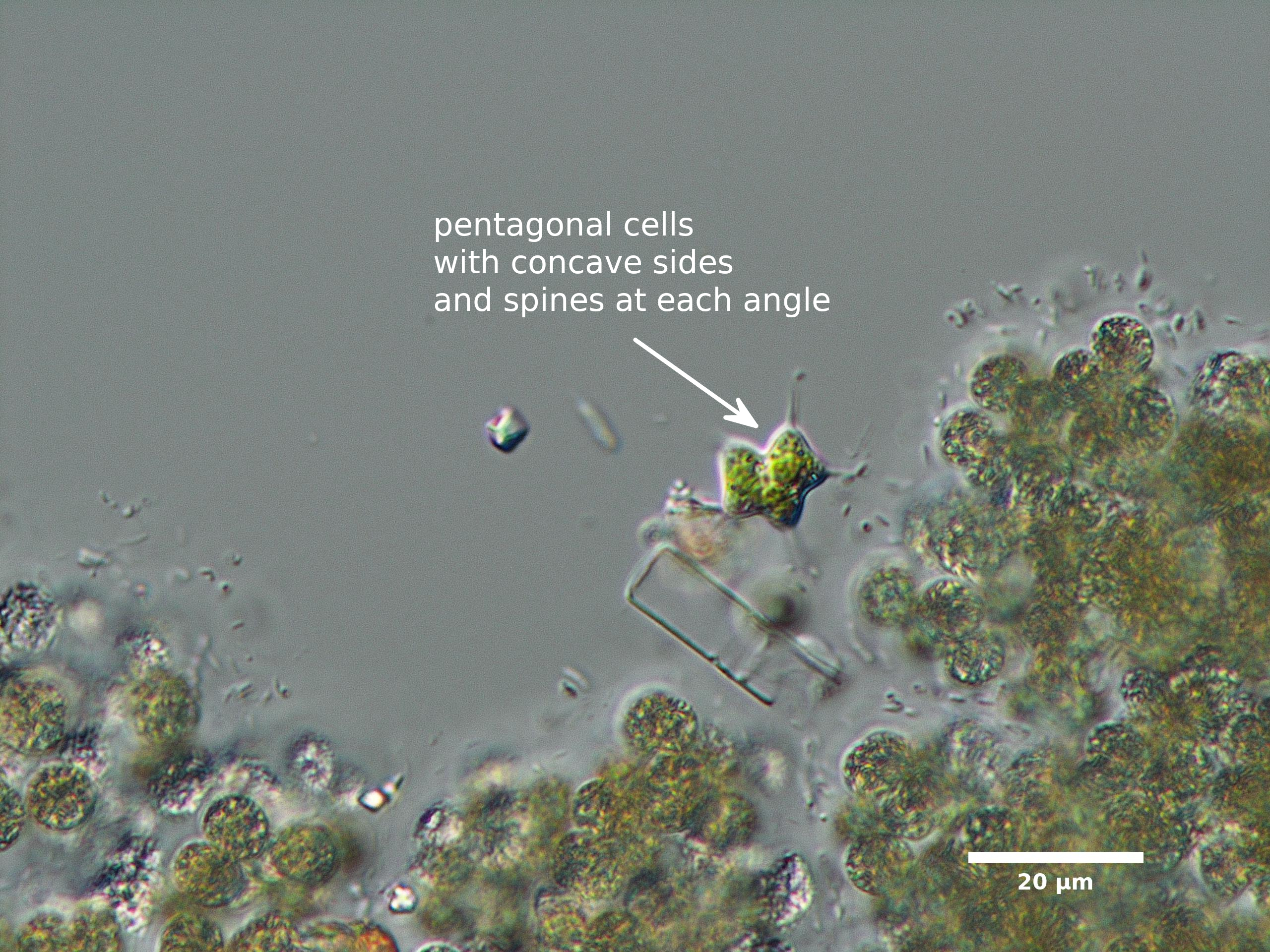 D1. CELLS 3-SIDED (TRIRADIATE) WITH LONG, STRAIGHT SPINES AT EACH ANGLE:
