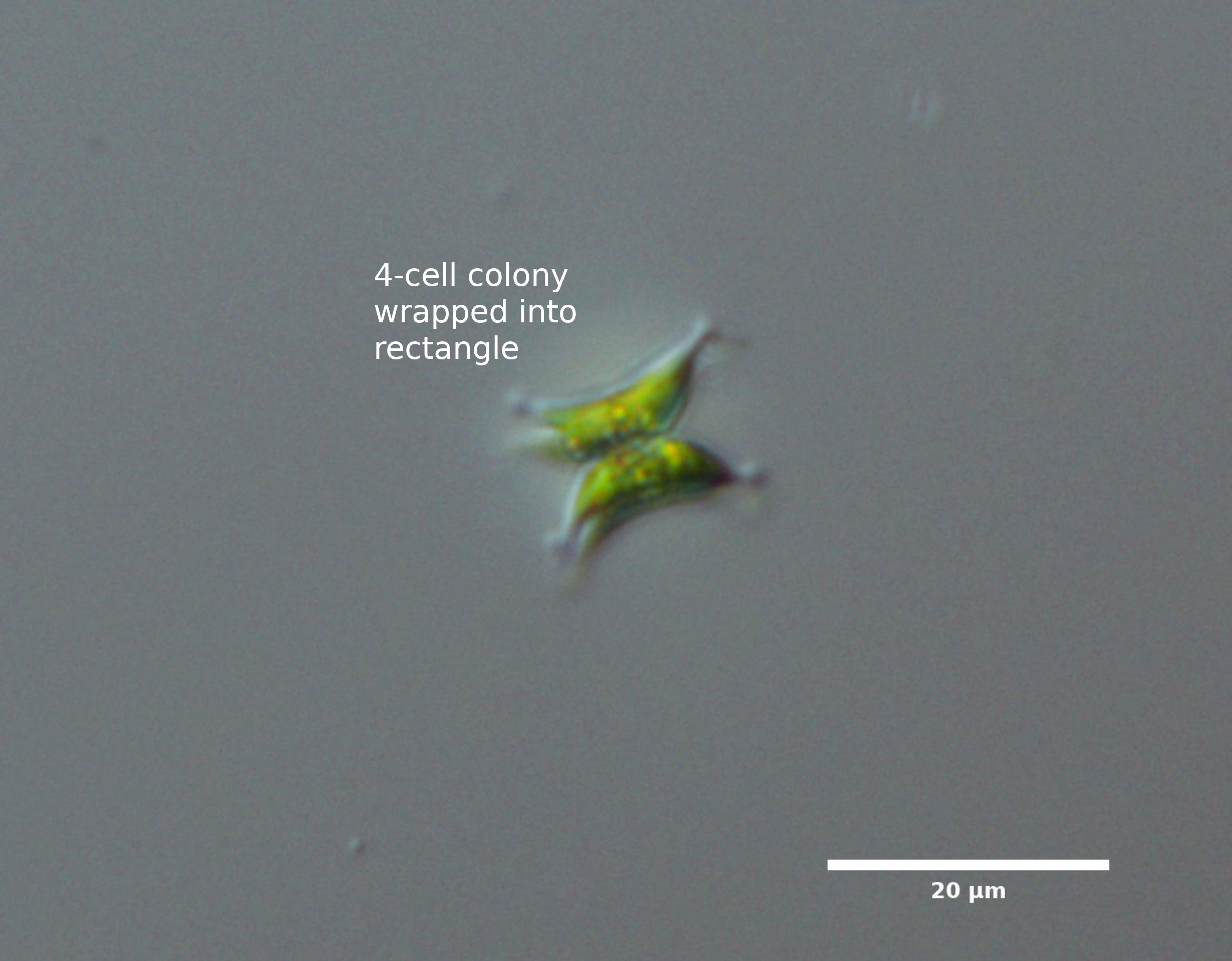 D2. CELLS FORM DISTINCT GROUPS OF 4; COLONIES MOSTLY RECTANGULAR IN OUTLINE