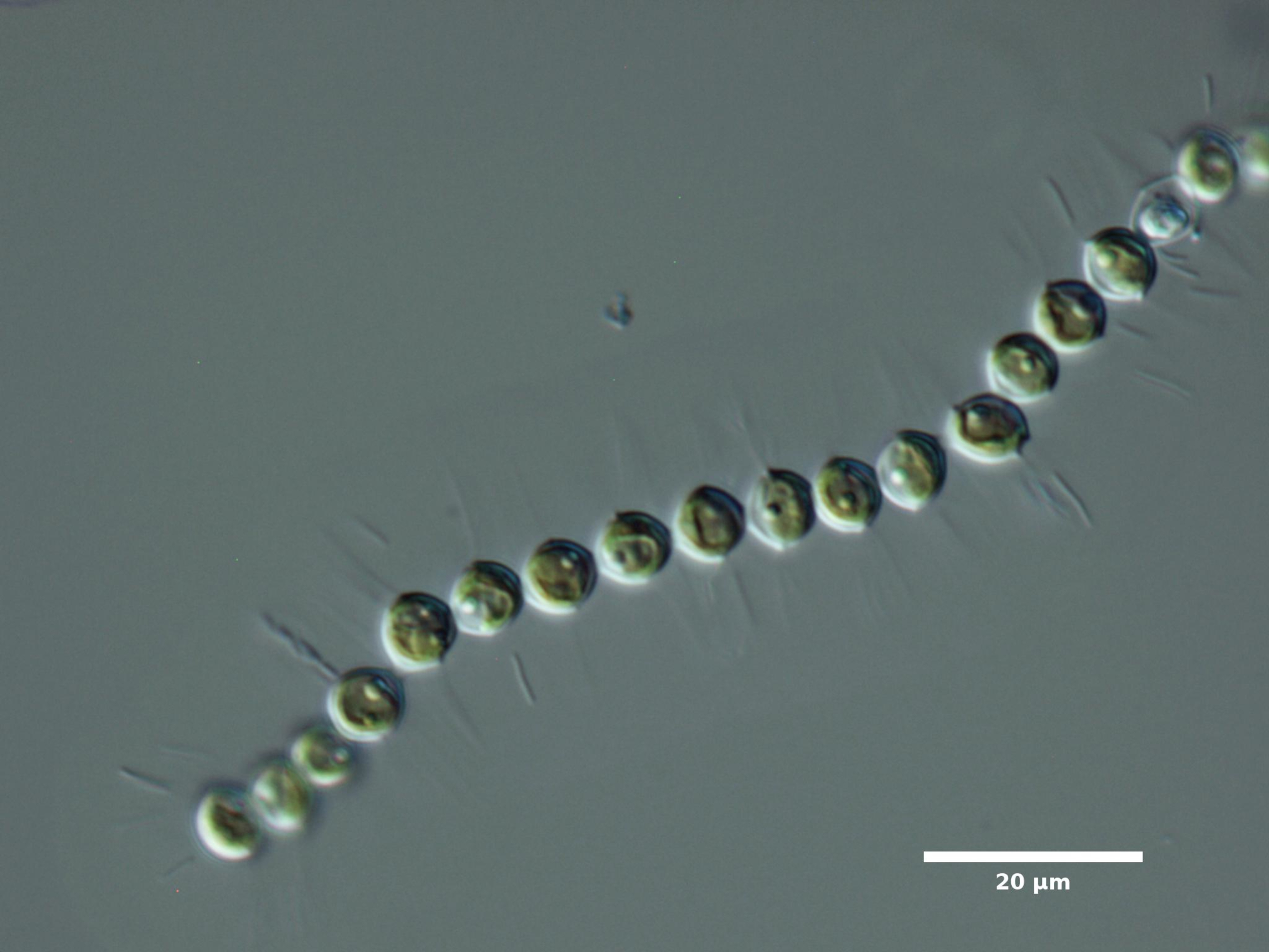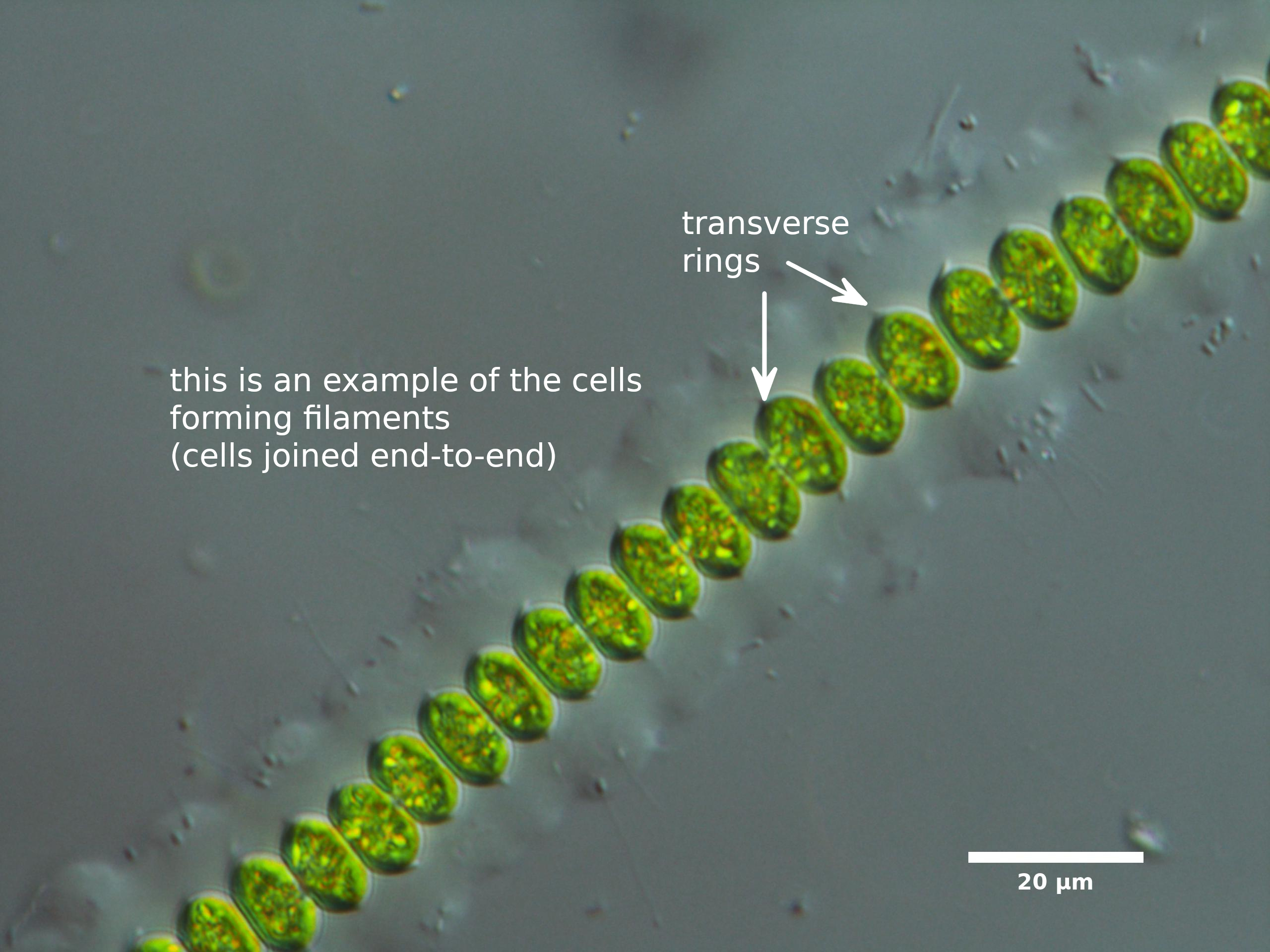 E2. CELLS BRIGHT GREEN, SPHERICAL, WITH TRANSVERSE RING; FORMING UNBRANCHED, UNISERIATE OR MULTISERIATE FILAMENTS OR PSEUDOFILAMENTS: