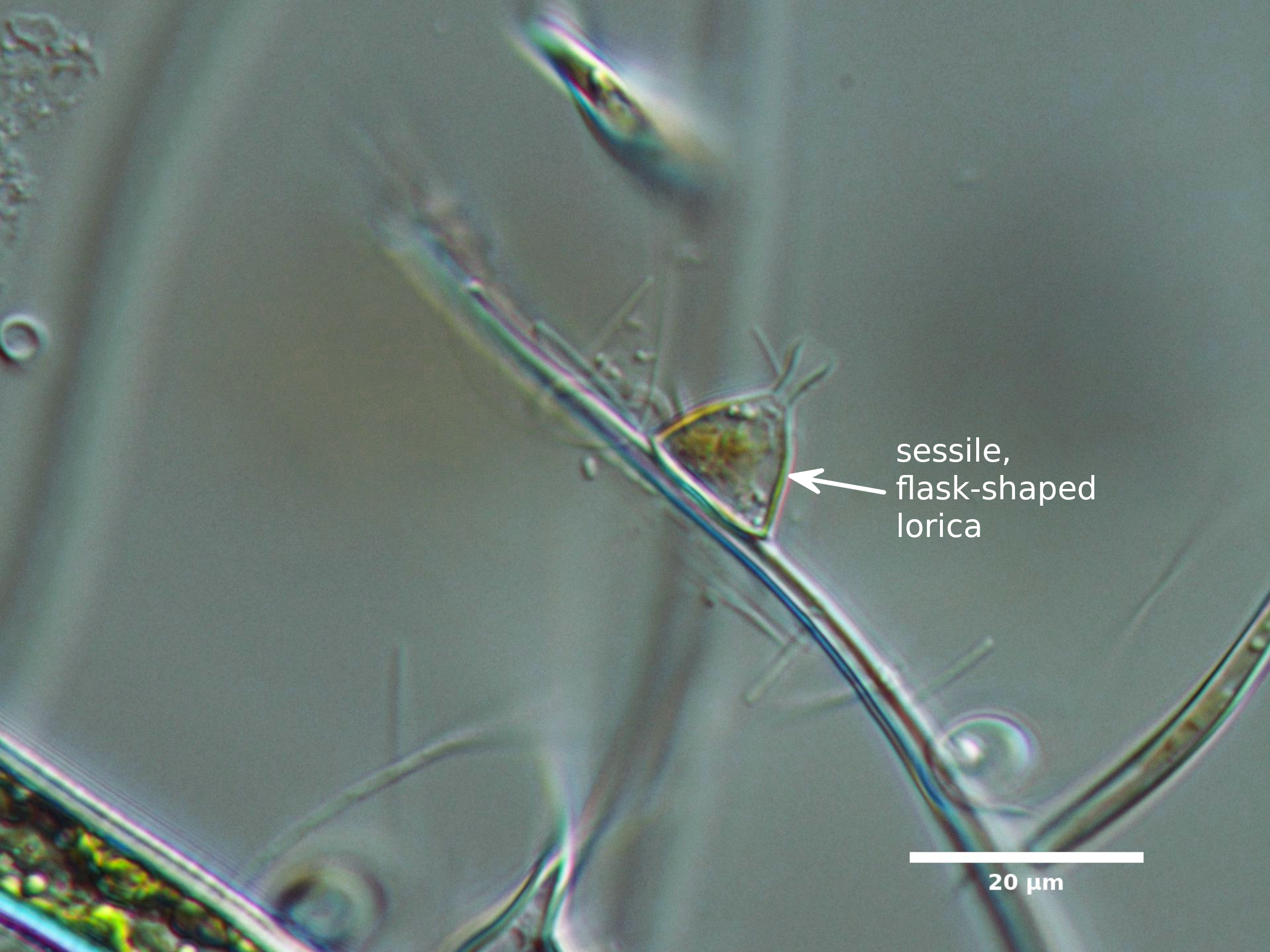 E5. LORICA SESSILE OR ATTACHED BY SHORT STIPE; CELLS TRUMPET-SHAPED OR CYLINDRICAL: