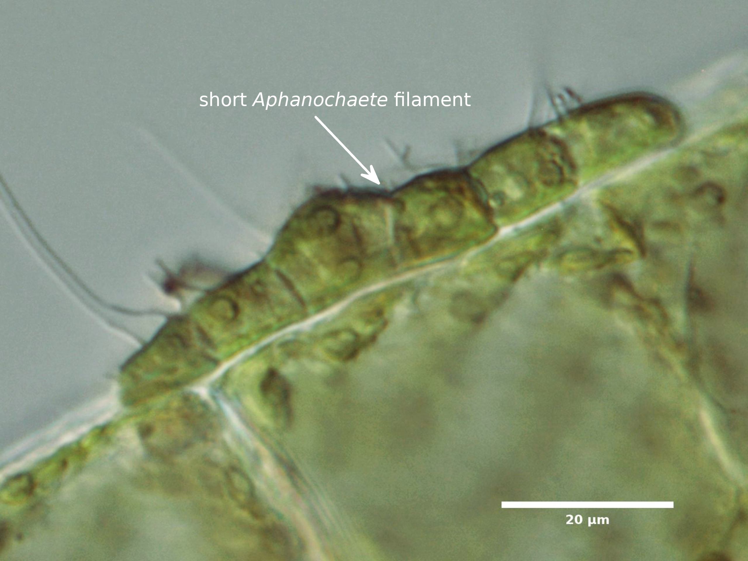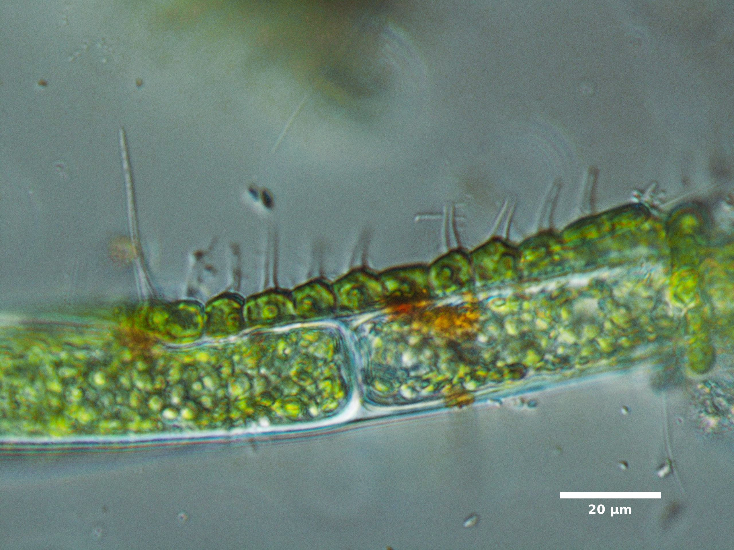 E4. CELLS IRREGULARLY CYLINDRICAL WITH ONE OR MORE LONG HAIR-LIKE SETAE; CELLS JOINED TO FORM IRREGULAR CREEPING EPIPHYTIC FILAMENTS:
