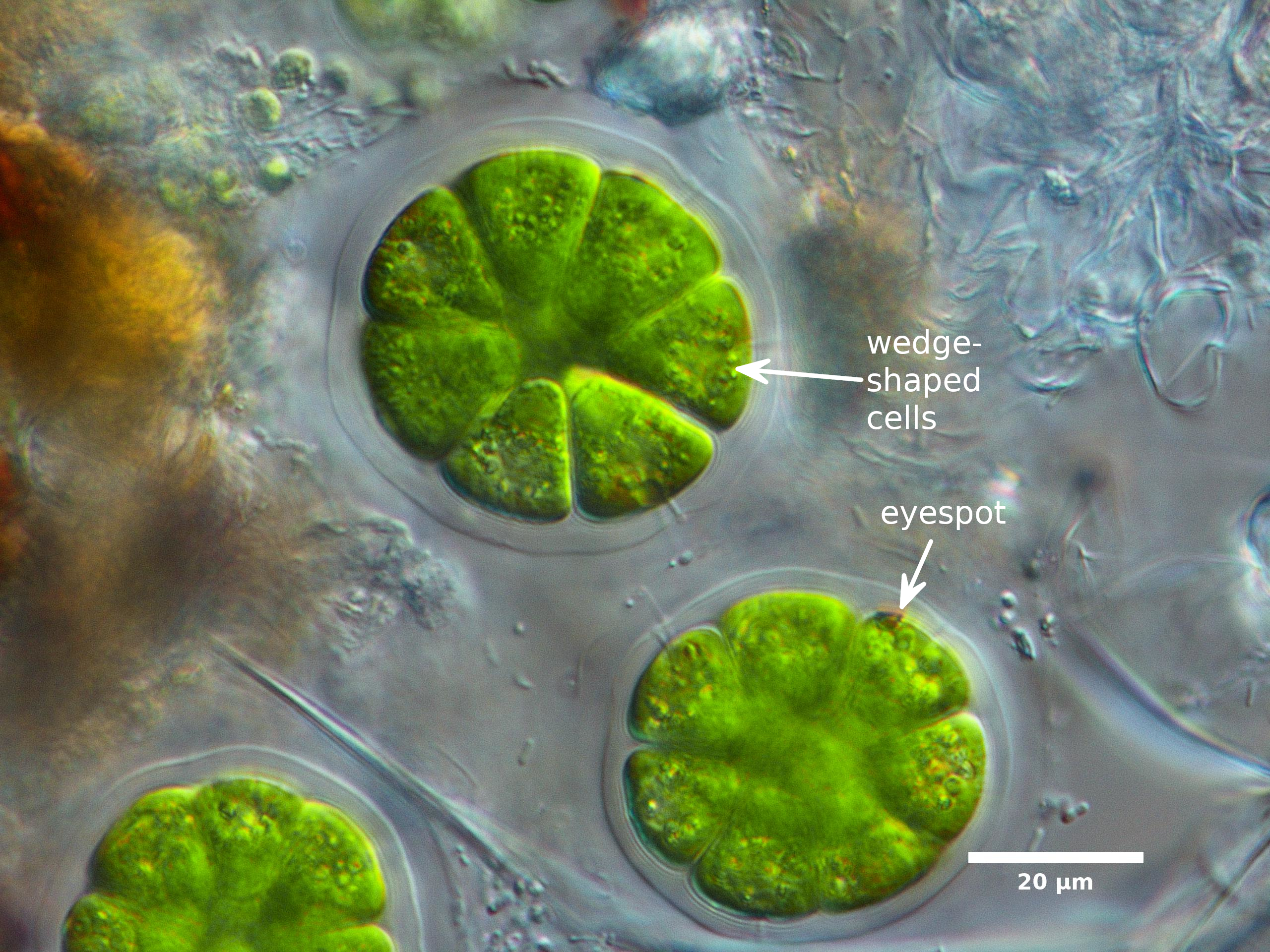 E1. SPHERICAL COLONIES WITH 16-32 COMPRESSED, WEDGE-SHAPED CELLS: