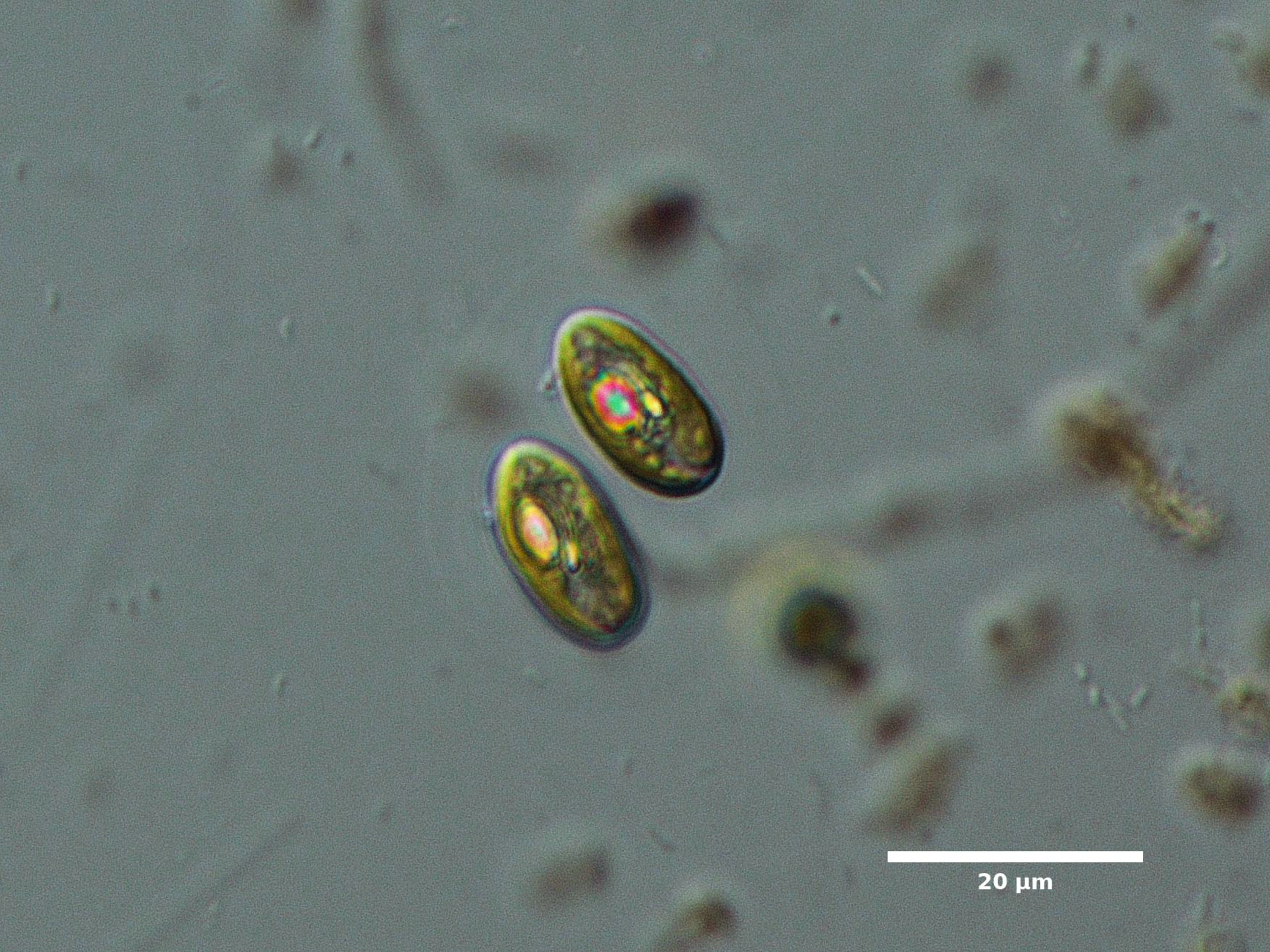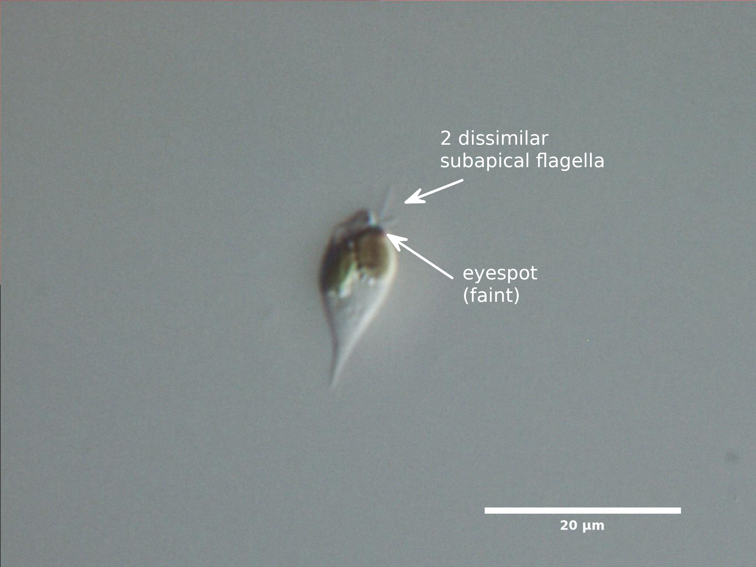 E4. CELLS SLIPPER-SHAPED, OVAL, TEARDROP-SHAPED; ASYMMETRIC; TWO NEARLY EQUAL FLAGELLA INSERTED BELOW APEX (SUBAPICAL):