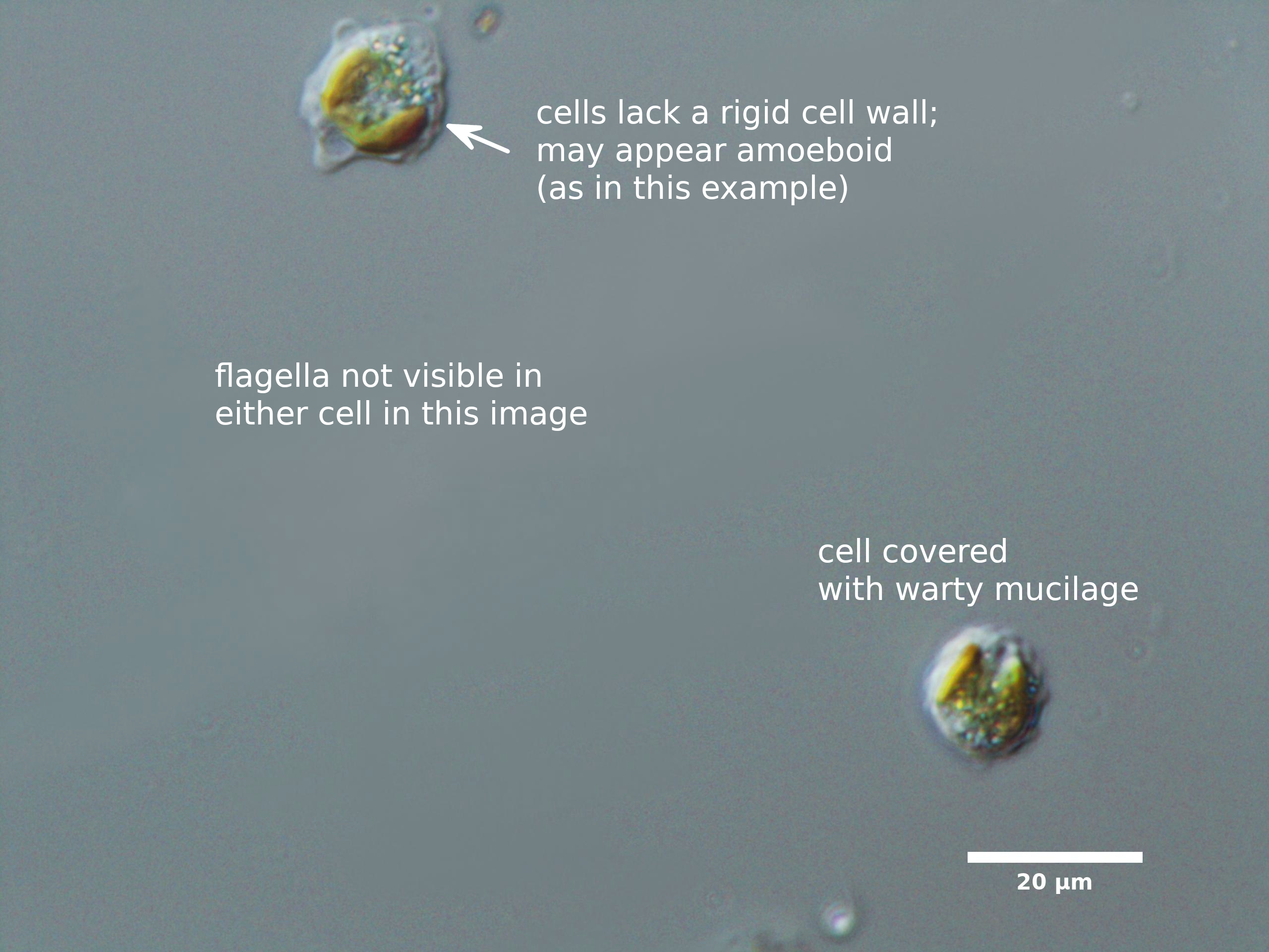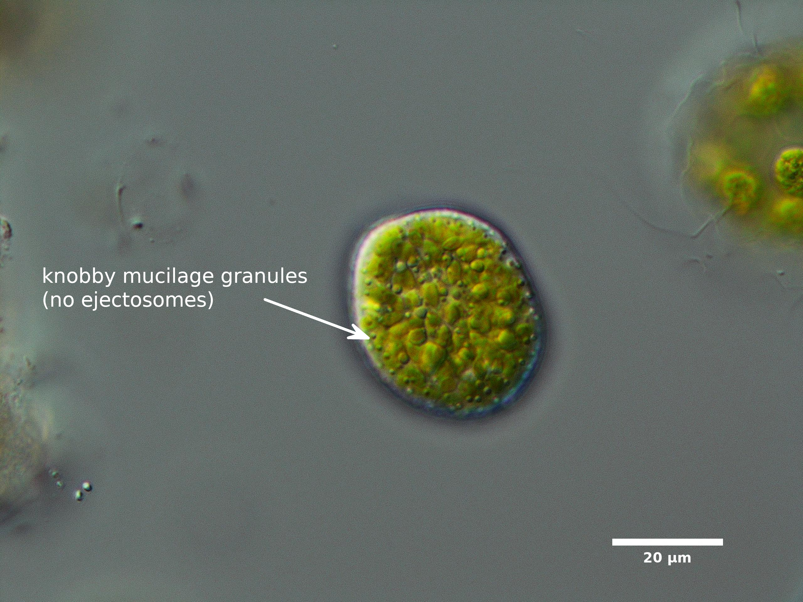 E5. CELLS OVAL OR SPHERICAL; CELL WALL CONTAINS KNOBBY MUCILAGE GRANULES (NO TRICHOCYSTS):