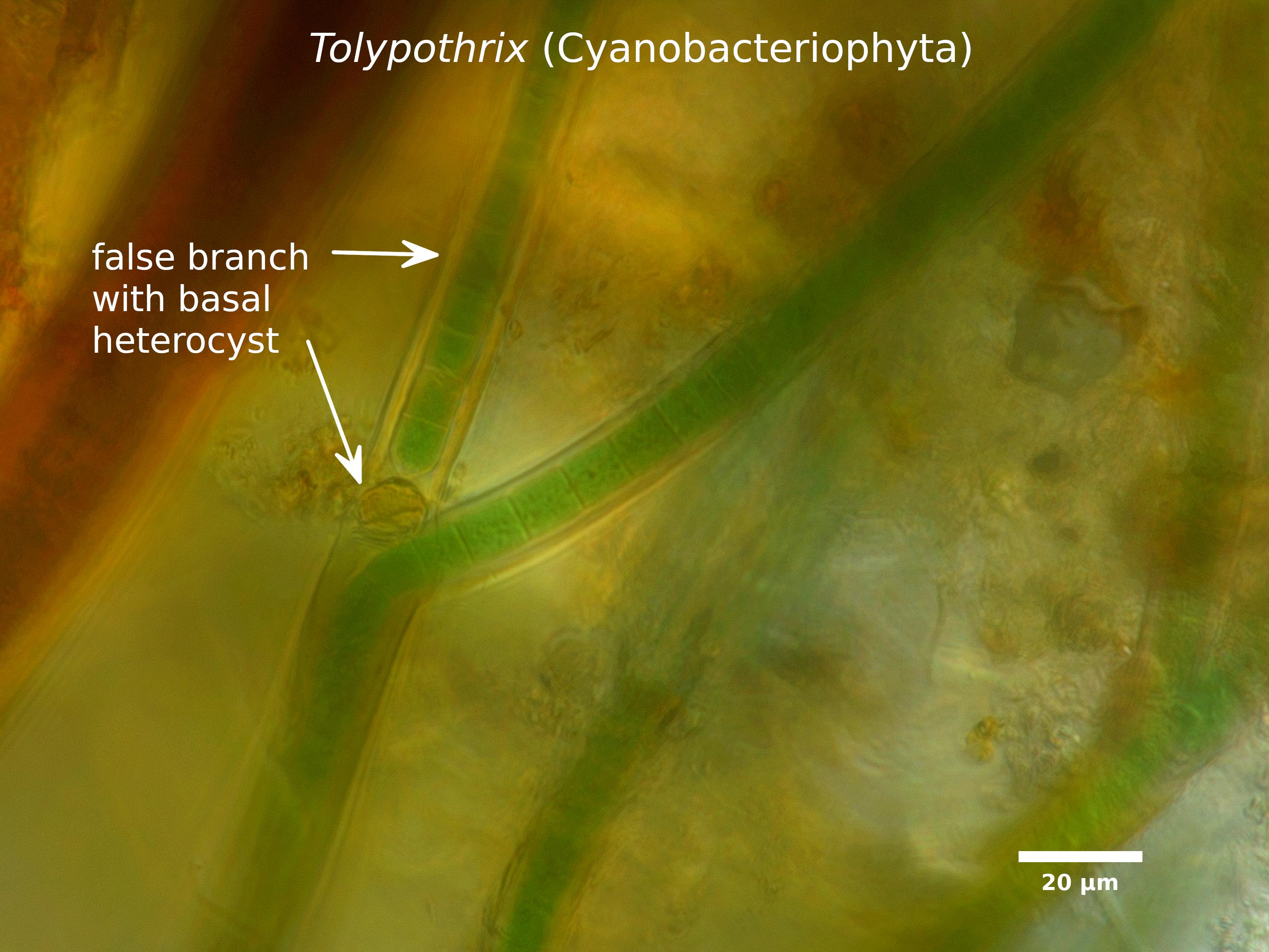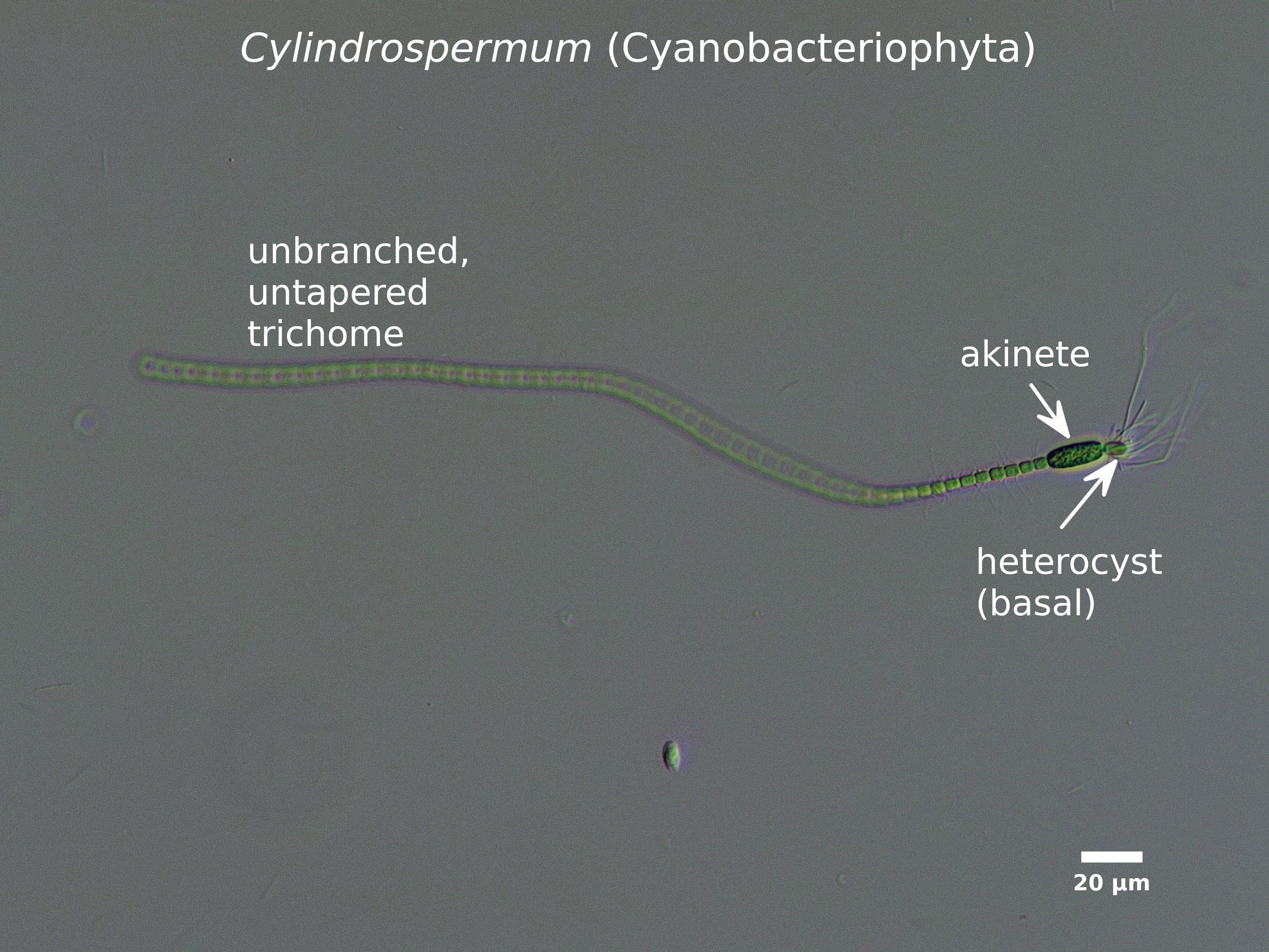 C1. Trichomes with heterocysts (heterocytes) at one or both ends (basal) or along the trichome (intercalary)