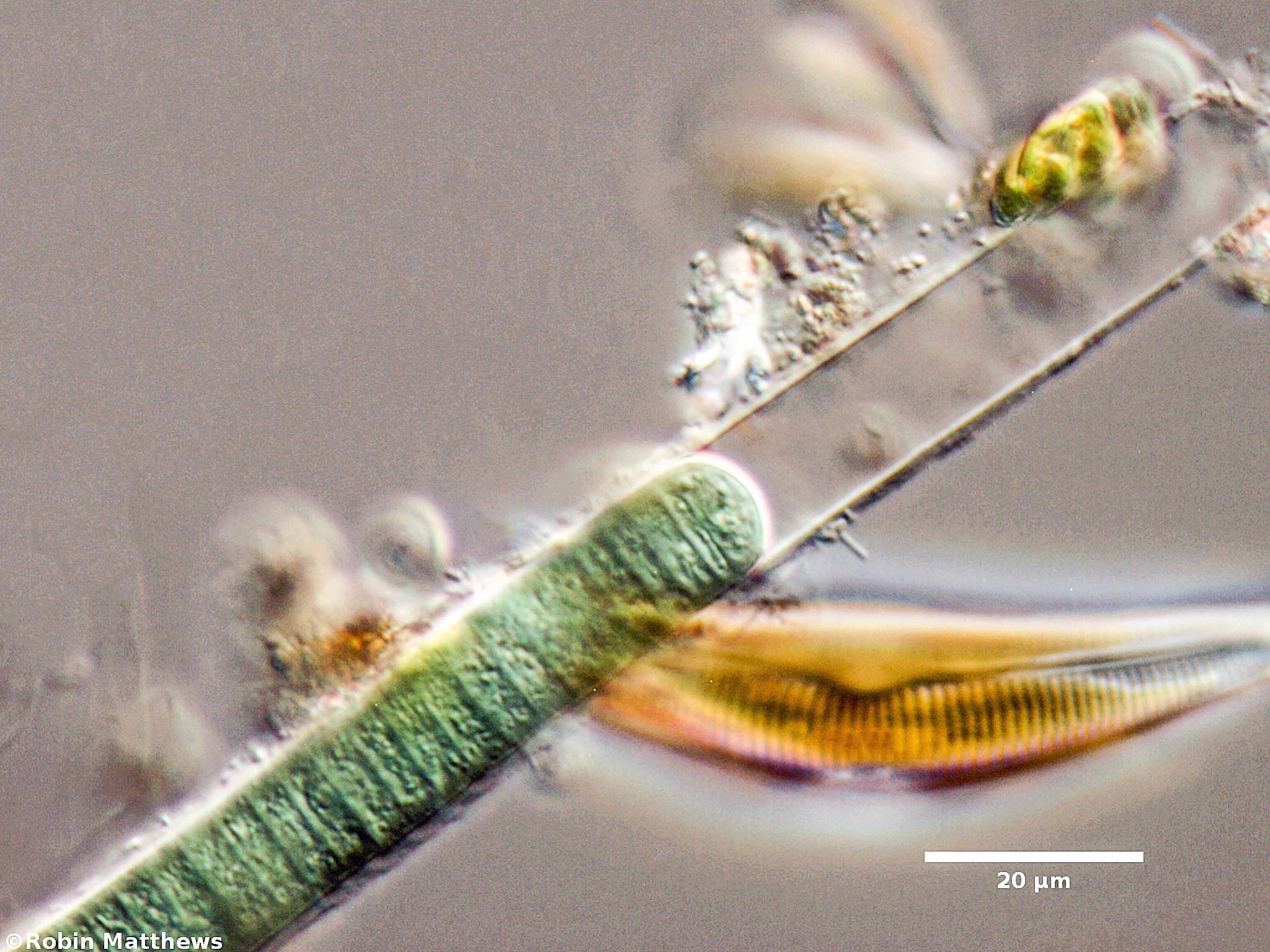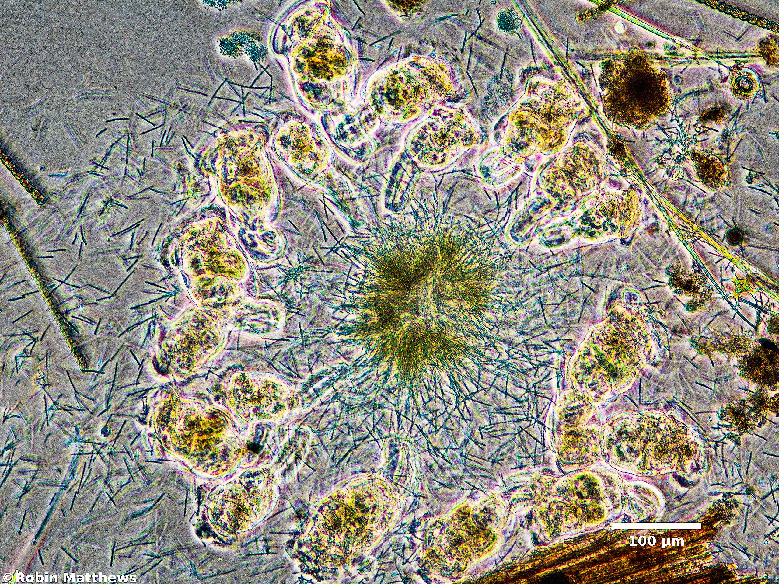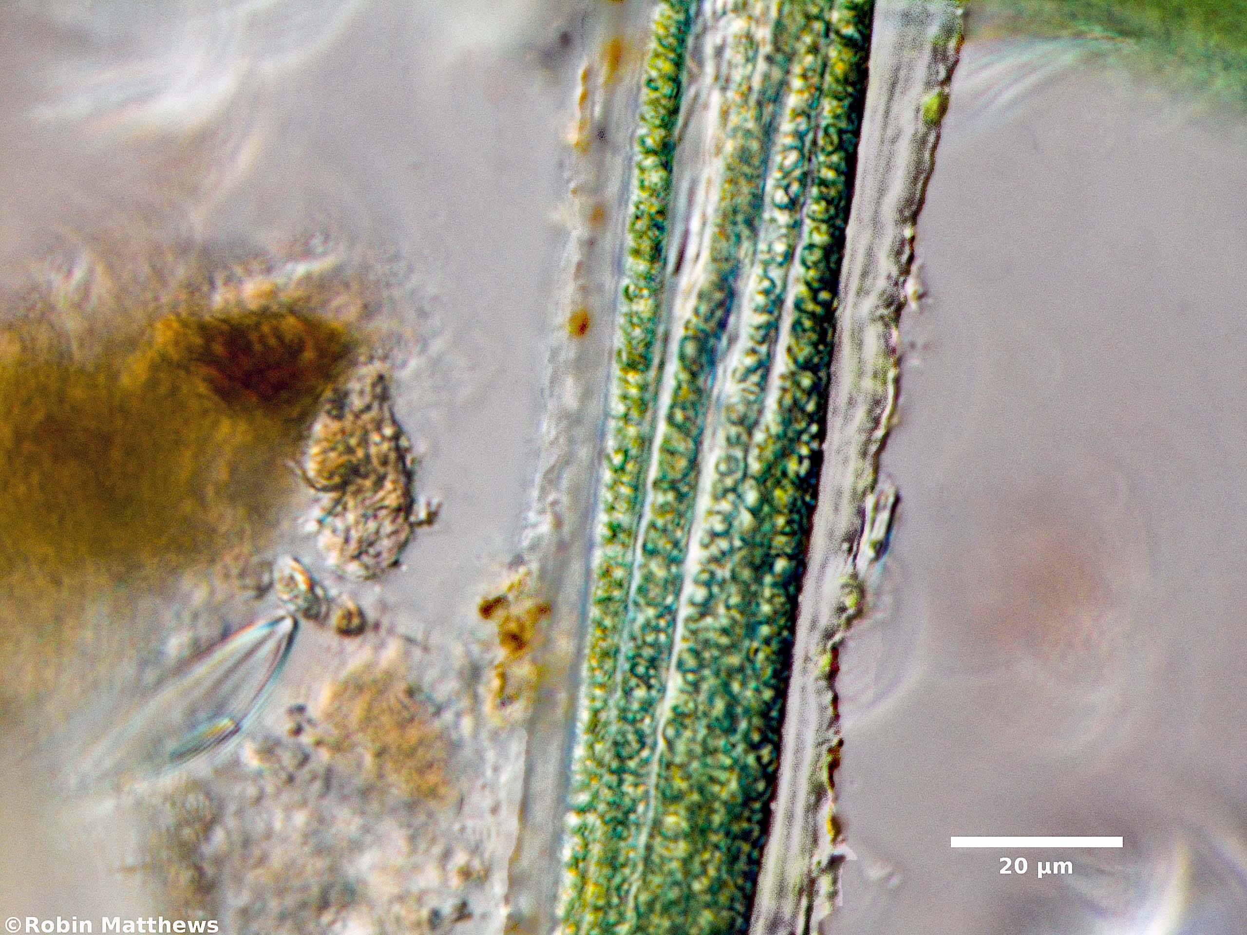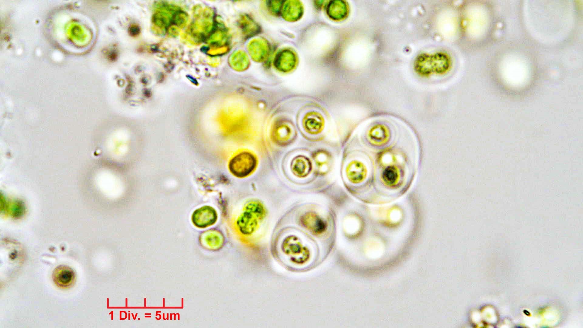 | Ecology: | Merismopedia (golden color) with Eucapsis; Lake Evan, IWS water quality sampling site, Snohomish County, WA |