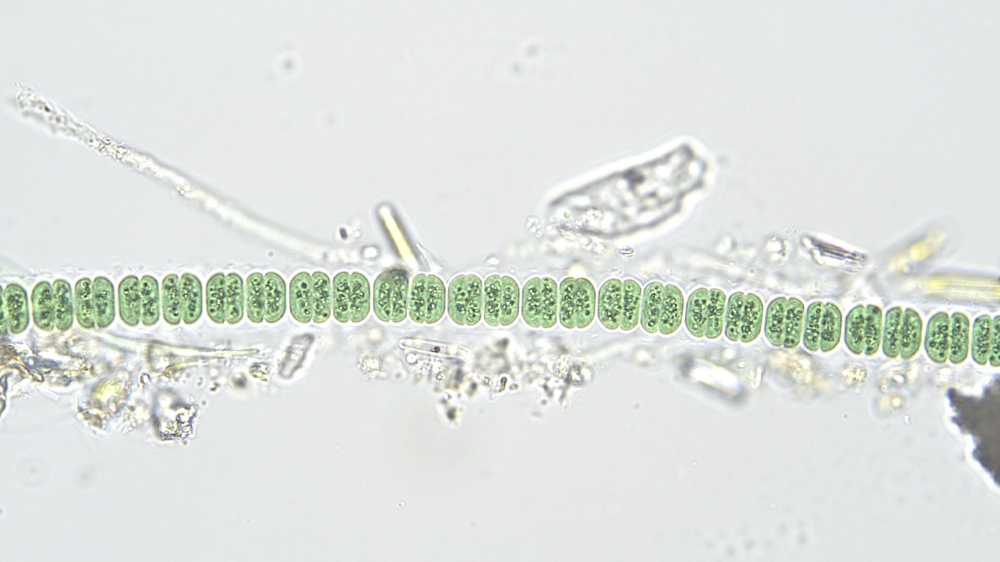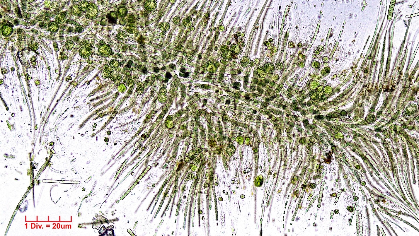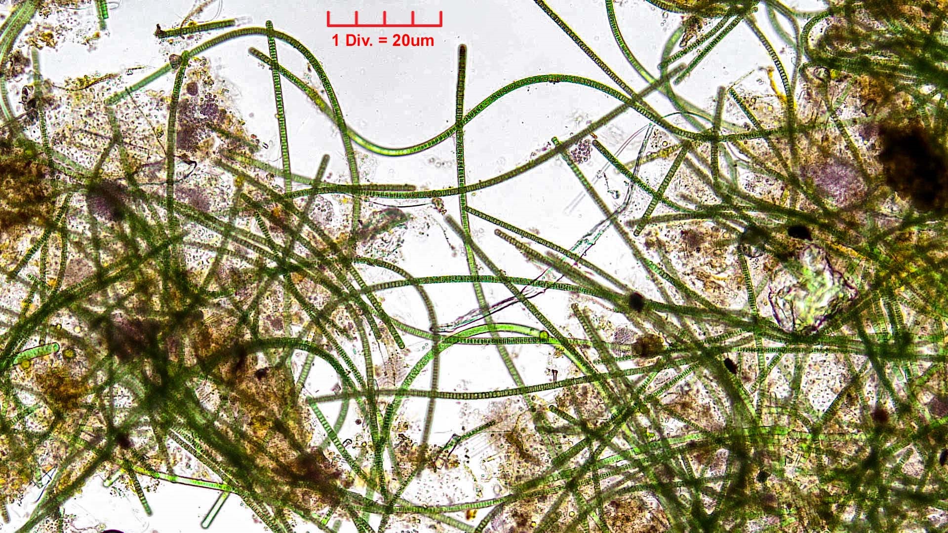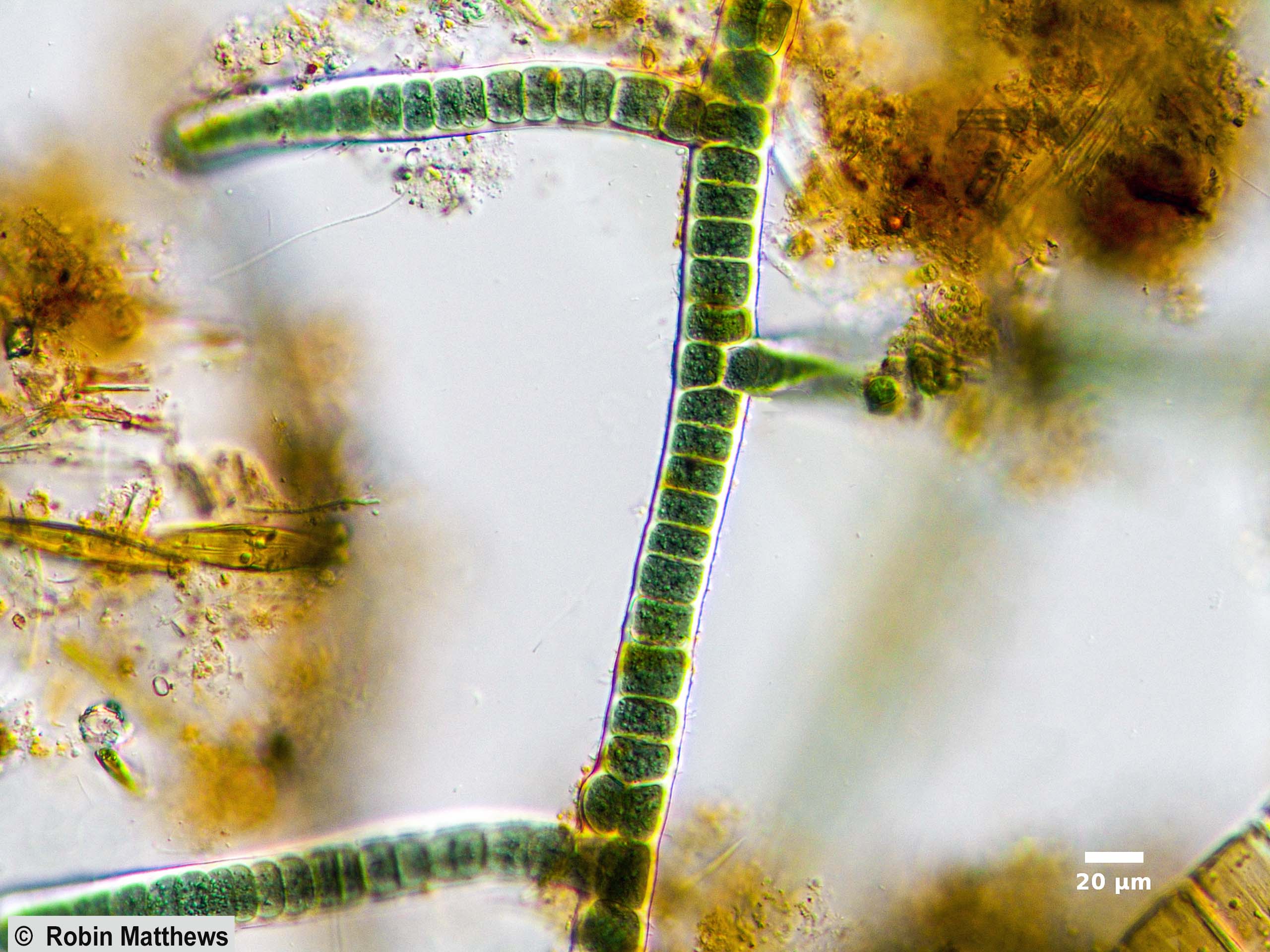 | Ecology: | Merismopedia (golden color) with Eucapsis; Lake Evan, IWS water quality sampling site, Snohomish County, WA |